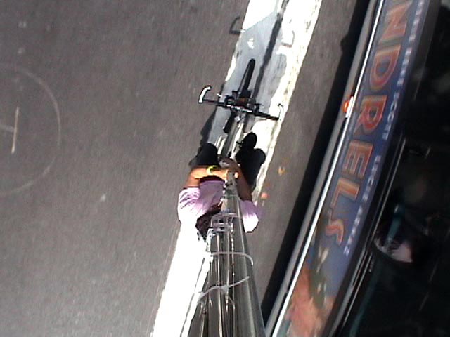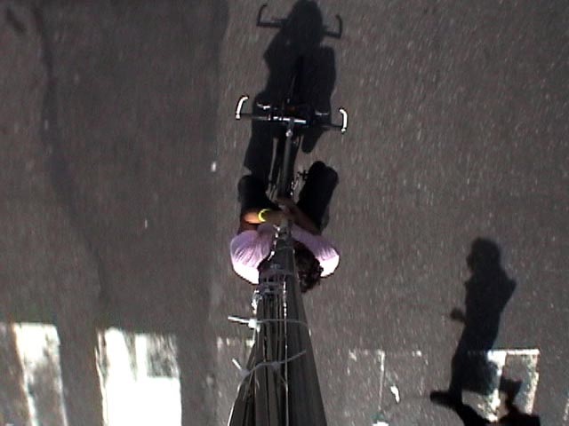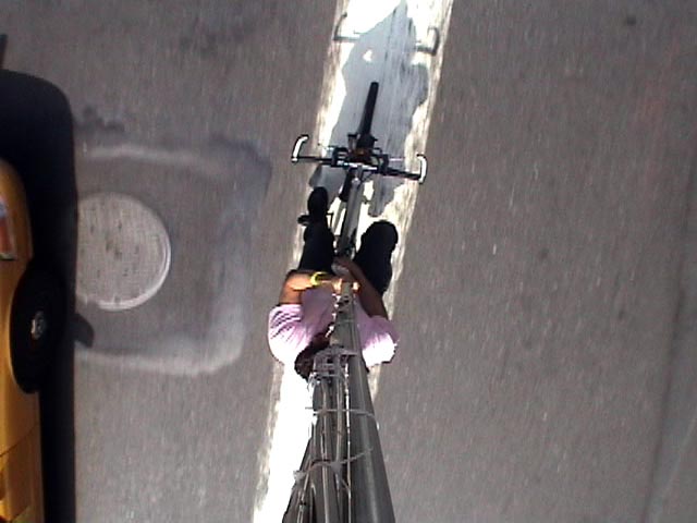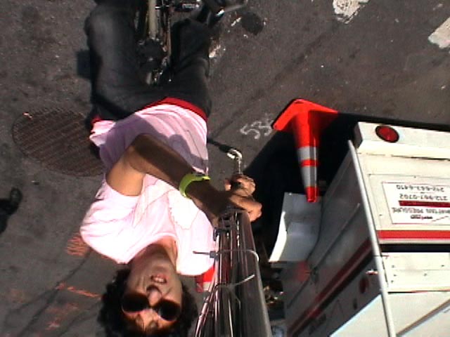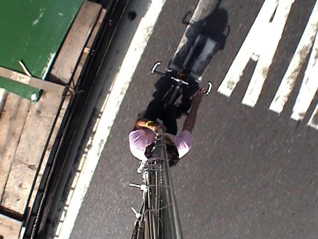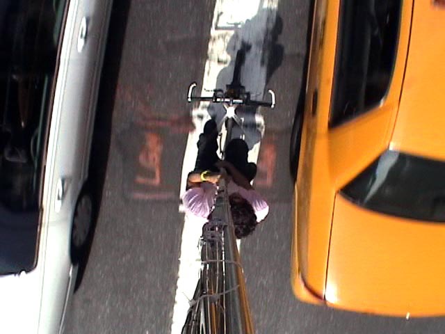 I wasn't stopped by surprised police cars, though they were passing me on my passage. The suspended camera stick refers also to the many regulatory police views across the city as well as the antenna of mobile news stations. It also produced some poetic bird’s perspective with unusual images of Manhattan and me navigating common waters in strange ways.
