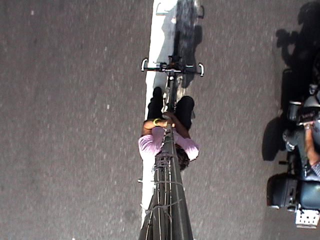 Let me add two comments by friends: Adrian Notz. Cabaret Voltaire, Zurich, told me that the camera extension stick reminded him of a painting brush drawing the line while bicycling. Carly Busta wrote me: " the stripe abstracts the space as though it was a marker on a film reel, and the perspective makes it seem as