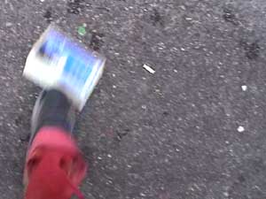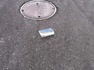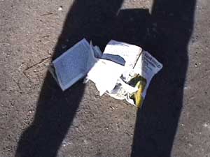 The Ego and the Id, 2002 video,6 min, destroyed book kicked towards a corporate tower in midtown New York. video: extract: see above