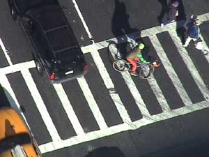 | Bicycle, 2001 video, 5 min, Baumgartner Gallery, New York 2001 I was driving with Haruko O on one bicycle in circles in the middle of the street. It represented for me some dream like experience, circling, danger, repetition, driving together with a woman on a bicycle etc... | |||||||||||||||||||||||||||||||