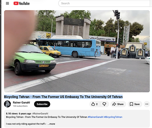 Bicycling Tehran - From The Former US Embassy To The University Of Tehran - 2018THIS WAS A BIT RISKY !!! TO SAY THE LEAST - entering a country with a A HATED PASSPORT - many regime admiror have been indoctrinated to saw in people like me through their revolutionary education the "DEVIL" -- bicycling and filming against the traffic, against an authoritarian regime in distress -- "commemorating" the reverse of a coup d'etat that established the revolution... it was a many week long "a la recherche de".... meanwhile,,.. today, March 3, 2025, US and Israeili bombs destroy for the "an AMERICA FIRST AGENDA" a "limited war" OPERATION epic fury ways - SORRY - AUTHORITARIAN REGIMES HAVE MORE THAN AUTHORITARIAN HEADS - their SKELLETONS are rhyzomatic EVERYWHERE and have a very, very long afterlife - almost like sticky shadows - paramount engaved into everything that cannot be bombed into submission or non existence by TRUMP & CO ... it has the smell of .... (you tell me ) time will show us but lets stay positive with fine art for freedom and justice for all, albeit of reglion, race, gender and class.