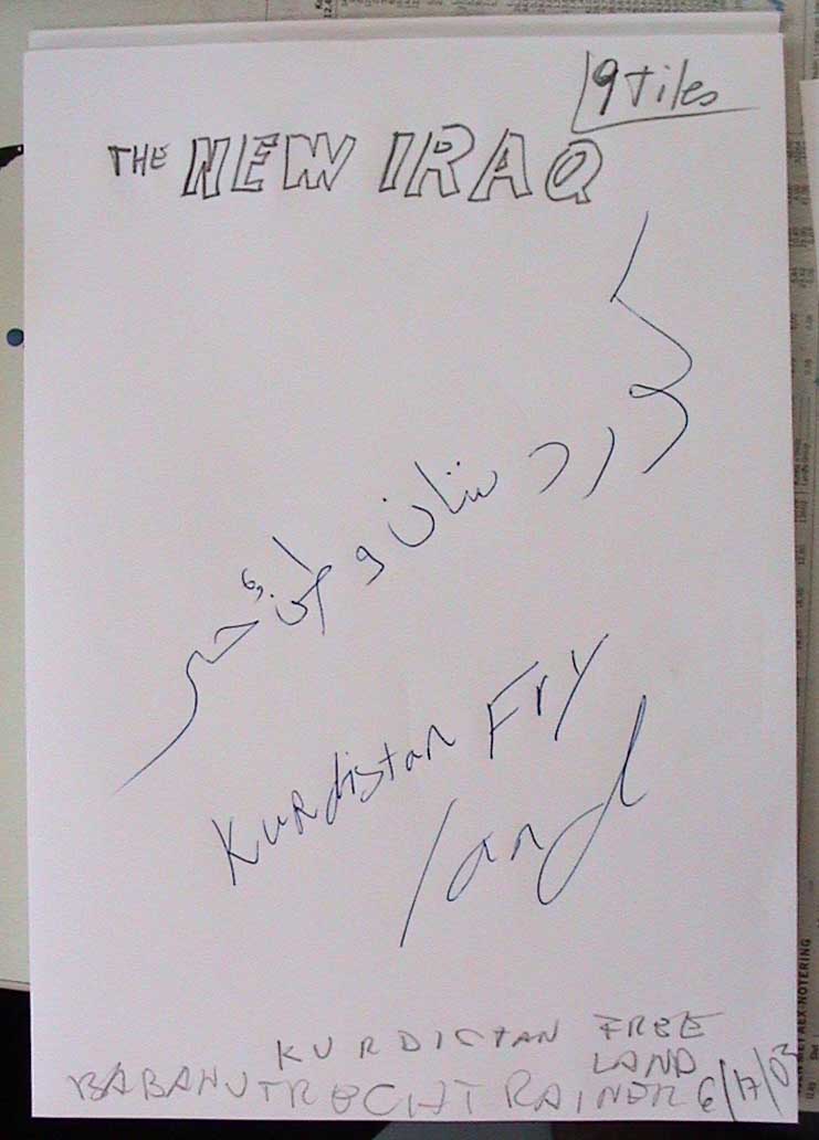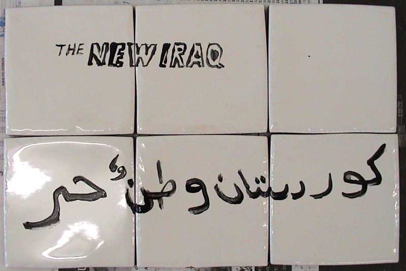 Rainer Ganahl IRAQ DIALOG: THE NEW IRAQ, , 2003 Arabic text and calligraphy by anonym, 2003 translation: Kurdistan is a free land painted and fired ceramic tiles, size : 20 cm x 30 cm