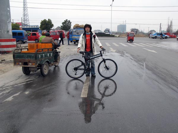 about copying: this did actually matter a bit since i was subjected to a CHINESE BIKE not produced for export and also the temperature in the room: whether it is the way they talk on the news in English, the bicycles, tv design, and so on: they do it badly..even the breakfast in the mornig.was some kind of fake in a funny way.. (concerning the European aspect of it -- of cosure. the chinese part was great.. and I also can't expect paris hotels put on great korean or chinese breakfast.. it would be the same.. but at least they don't try to do that.. ) but what unnerves me right now are the windows: they look like fancy modern alluminium windows.. but in fact.. they don't close properly and i can put my finger through the closed window. .i have never seen anyhitng like that: . today it is coldand i'm freezing.. and the wind blows in: I used masking tape to keep teh wind from entering ... "chinese way" to fix it.. (((I m aware how eurocentric and arrogant i sound))) -- hte bike thing was also annoying: they copy latest designs.. all these cute little foldable bicyle.. and i was about to purchase one since i can never really say no to them.. but it fell apart already in the shop.. and the bike i was forced to buy , all china for chinese market.. also does't work... .. in fact. the breaks didnt' work and i almost crahed on the brdige.. in the joints of the birdge an dcouldnt' slow down)))) BUT I ALSO WANT TO POINT OUT.. SHANGHAI IS TERRBILY BEAUTIFUL.. SUBLIME so to say also,, there is a lot of really good architecture as well... it cannot be dismissed at all.. and it rocks.. the old part of the city are a dream.. and the place has some of the beauty we can already observe in tokyo.. that is strikingly opposite to allt he prejudiced that ruminate in the west... so I do already love shanghai.. nontehless.. the news , even biz news. sound a bit like some ambitious student who copys everything together without realy udnerstandin the concepts. (( i know now i m arrogant and mean. myself. saying this.. but something is there.. ) in the office.. they made me sign my proposal.. to only show the bridge video and I can' t use hte hummer bike.. and follow hte rules.. i was given basic lessons how everything is about following the rules.. (I got that msg) march 19 I just witnessed the most BASIC WAY TO CENSORSHIP; capping the signal: while watching bbc here in this hotel, they talked about tibet.. the dalai llma and yes.. suddenly the image turns off.. as if the TV is off.... I switch to other channels and now... .. and just now comes back the image so there is really somebody sitting around watching BBC and simply turning the signal off.. very primitive, very effective here i was just able to catch the same segment again.. click for 1. 20 min its i s 4 10 am china time.. (jet lag. i fell asleep at 9pm - couldn't even have dinner. too tired) -- later in the evening.: OK we, frank, my taiwanese asssitant friend frank.. today, we went back.. two bicycles in small chinese taxi.. that is a great PLUS FOR china.. you can do almost anything with them.. the bicycle hangs out form the back.. and they don't care.. we stuff the other foldable bike hummer on the back seat and they don't complain.. even if we make their white back seats dirty.. we sit like monkeys in the car.. so first withe hte taxi to the busstaion 45 min.. shanghai is gigantic and quite amazing. so far the biggest city i have seen. it starts to outdo tokyo.. from the 3 days i ahve the impression that shanghai is bigger then tokhyo. .and makes nyc look a village then comes the bus station.. each ride another condition. the frist day.we entered with my Hummer bicycle and everybody comes to look at it as if they hadn't seen a bichycle yet.. (I come to udnerstand that they only sell shitty bichycls but still) even the security came to ask --- everybody alwasy has the same question: how much was it.. and they give already anumber.. actually not so far off..: it cost me over 900 dollars ---- but today. they didn't let us enter.. so they kicked us out. .but soon we realized that we can purchase a bike ticket. and so we did: the price:more then what we paid for ourselves.100 RMB (about 14 us dollars) on the way back.. the frist day , they charged us 15 RMB and today on the way back 20 RMB.. tehn we arrived.. the musum communicated with the brdige managmente and a woman was waiting for us.. (quite a different reception. the security people who told us to go to hell were nice and stepped back.. ) we were told that FOR OUR OWN SECURITY we can only bicycle 5 km ..because afterwards its not finsihed and its too dangerous.. and so I bicycles.. me filming and frank filming me filming...after 5 km they stopped us.. in the middle of the bridge.. without any reason.. there was absolutely no traffic. and no works on the way.. but we left the bicycle there. .unlocked and accepted her offer to drive us over hte bridge.. so we crossed the bridge. hte rest of it with the car.. so basically 38 km.. 25 minutes by bicycle and 20min driving.. (there two was a kind of strange little interruption: she was driving.. about 3 cars passed us.. the drive was really beautful.. incredible playground this bridge. ... --- so about 5 min.. before we arrived on the other shore..she stopped (which isn't really what i intended for my film) and suddenly wanted to turn around saying our bicycles aren't safe.. (before she told us. they are safe. since nobody is on the brdige and htey have security on both ends) .. .. but i told her.. I don't care, even if they throw them in the sea.. "over board".. .. and she finally gave us the remaining 5 mintues.... on the other shore I could do what i first intended: the make a second version: one wiht the chinese bicycle.. - i couldn't use hte HUmmer scine they hated that.. (in one eamil i wrote them that Hummer also makes military technolgy -- which company doesn't - ) so goint i used hte chinese bicycel. ( at one point, i almost crashed because of t