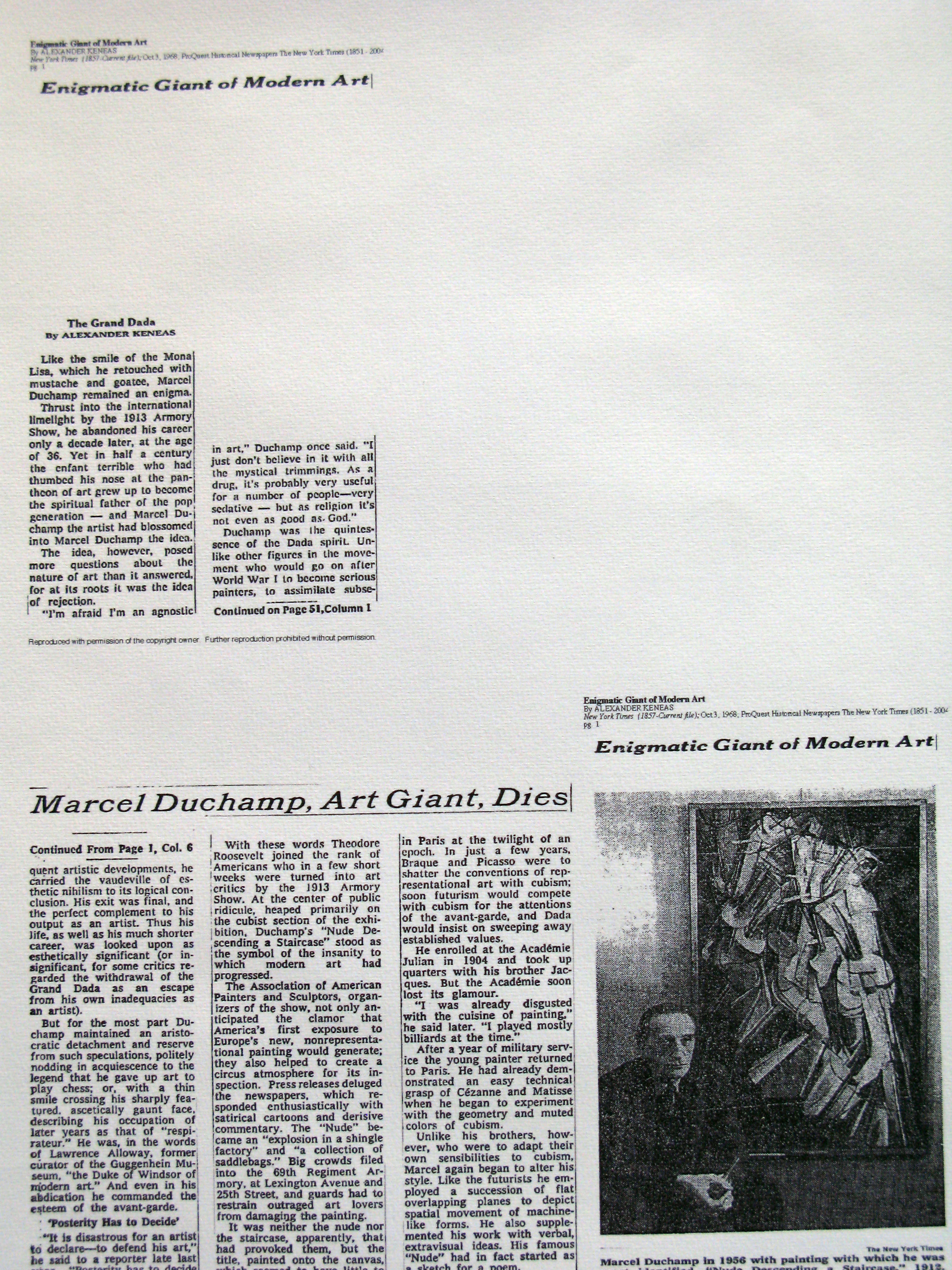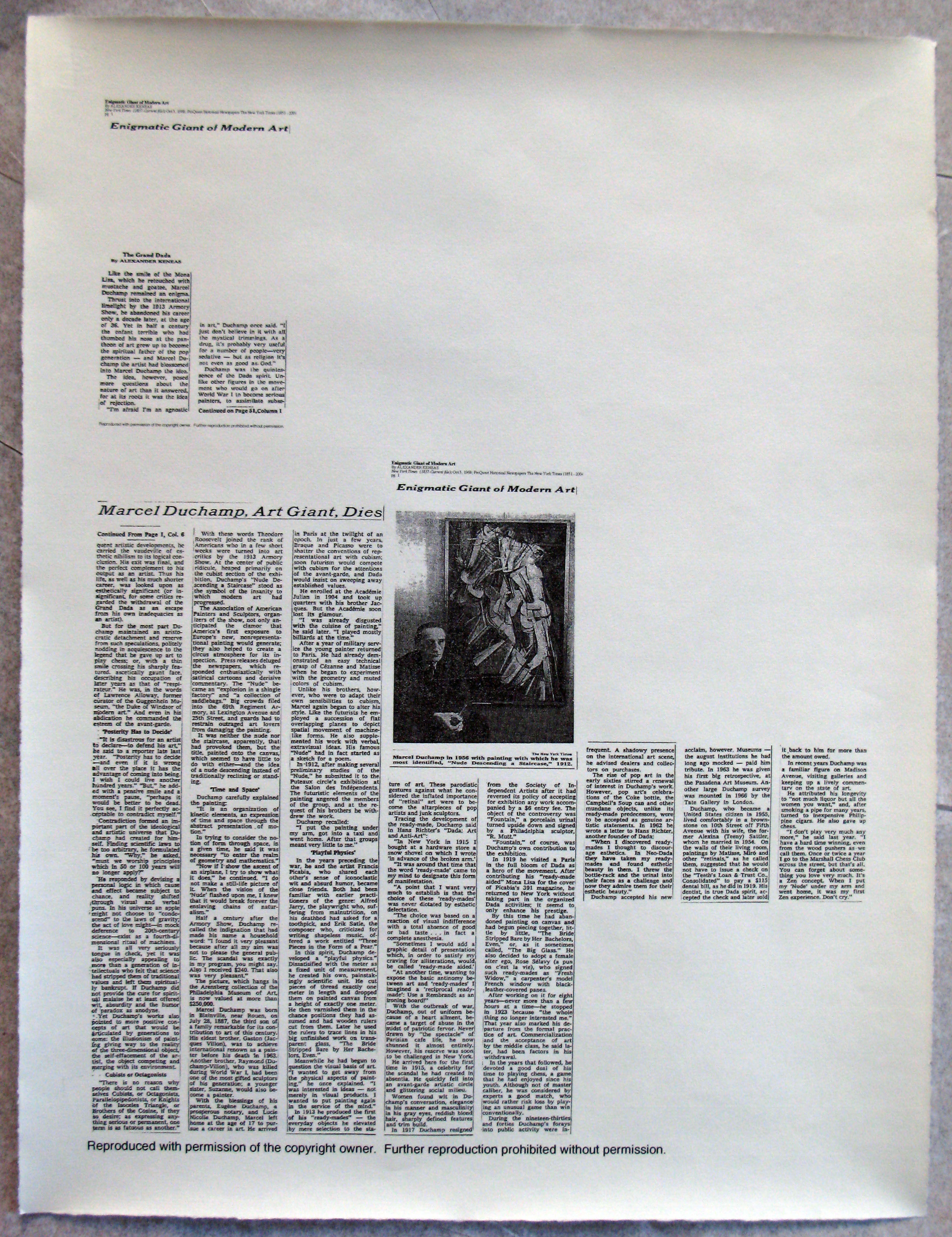 DADALENIN NY TIMES DADADEATH, Marcel Duchamp, 1968, 2008 ink jet print on paper, 64 x 48.5 cm / 25 1/4" x 19 1/8 inches