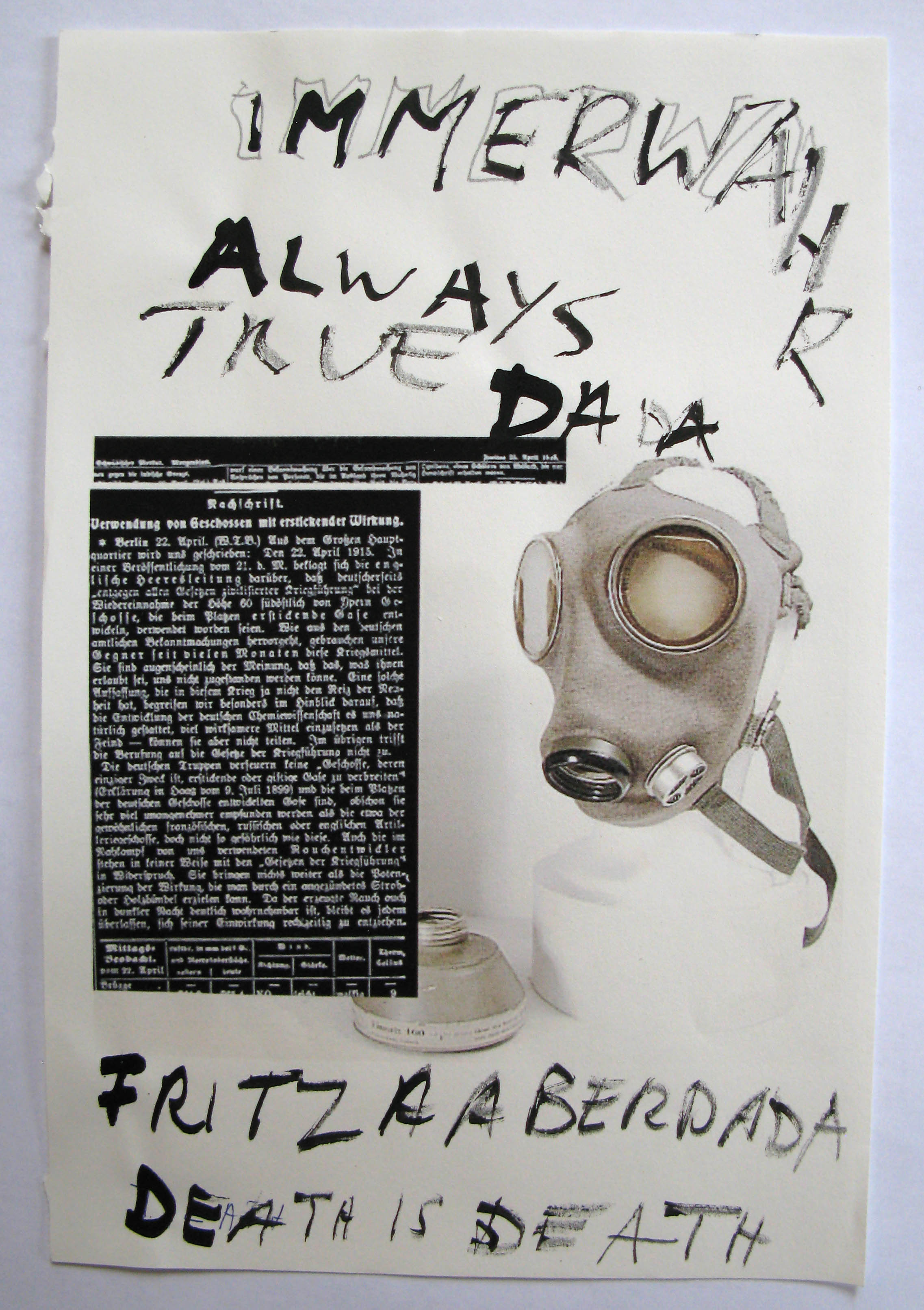 dadalenin, 2007 bust, 2 color plastic bag, pencil writing (dada, write nothing, read nothing, say nothing, publish nothing)