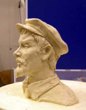 Lenin wearing fake hair to hide his identidy. Lenin made in porcelan (production photo, unglazed) - in disguise, with fake hair.