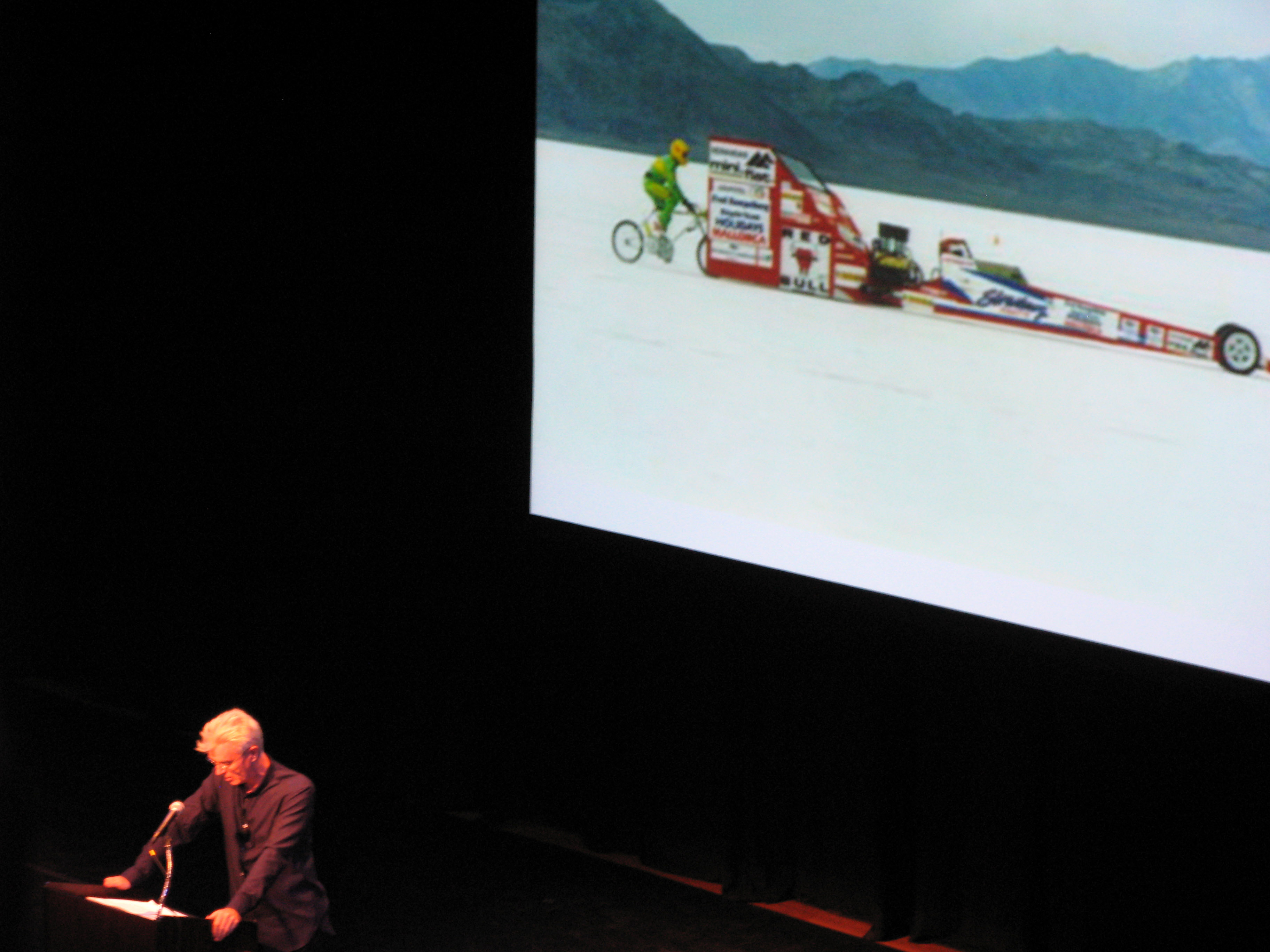 Seminar/Lecture, David Byrne, How New Yorkers Ride Bikes, An evening of music, discussion, film, readings, and surprises dedicated to the advancement of bicycling in New York City, Town Hall, New York, 10/6/2007 4 photographs, 20 x 24 inches (51 x 61 cm)