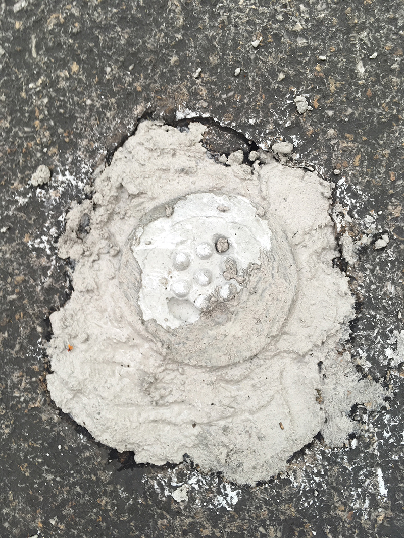 at the moment of this picture the concrete was just placed... I ll return and clearn after it dries due to the illegality of this intervention the exact site is not given.