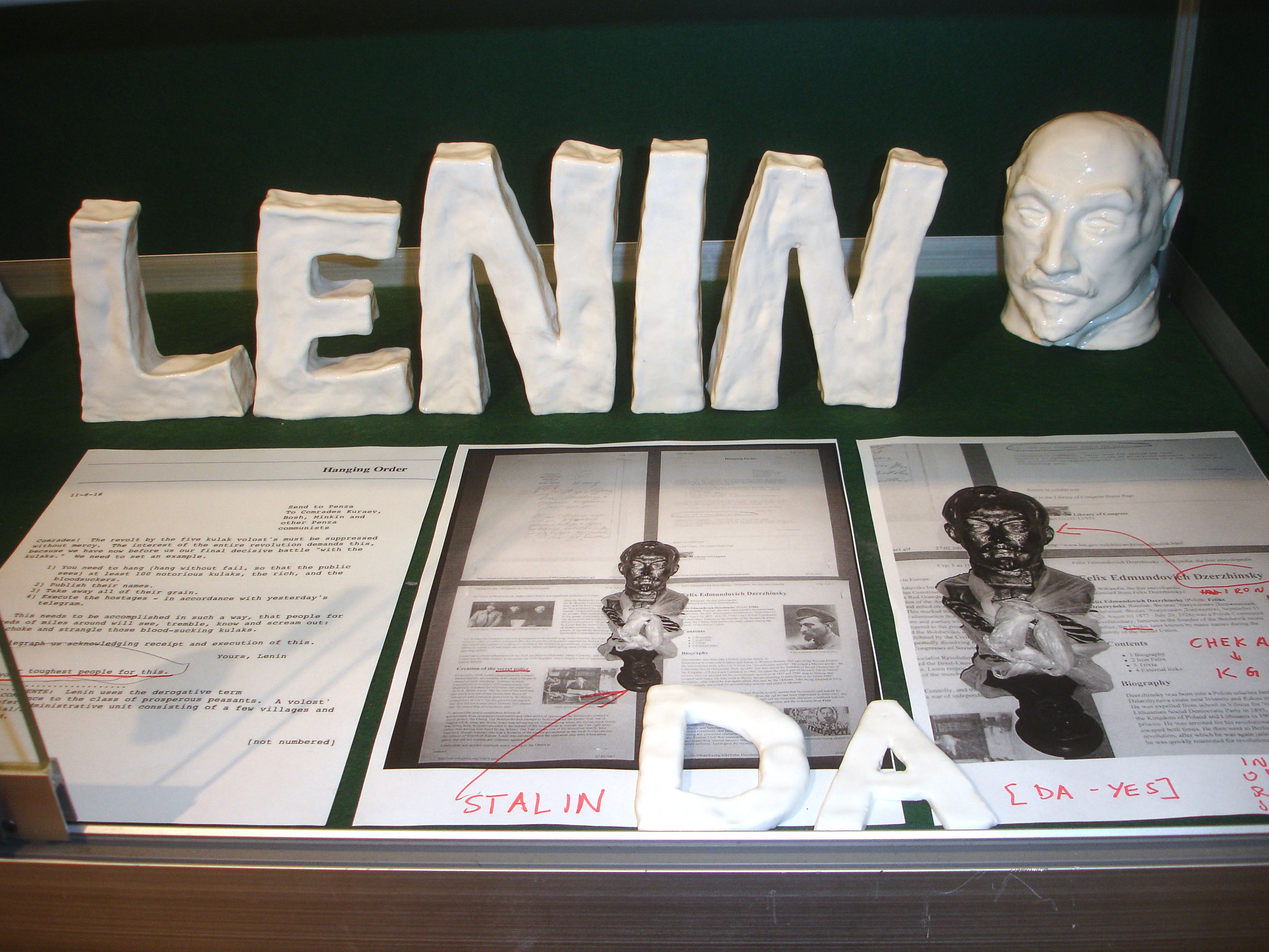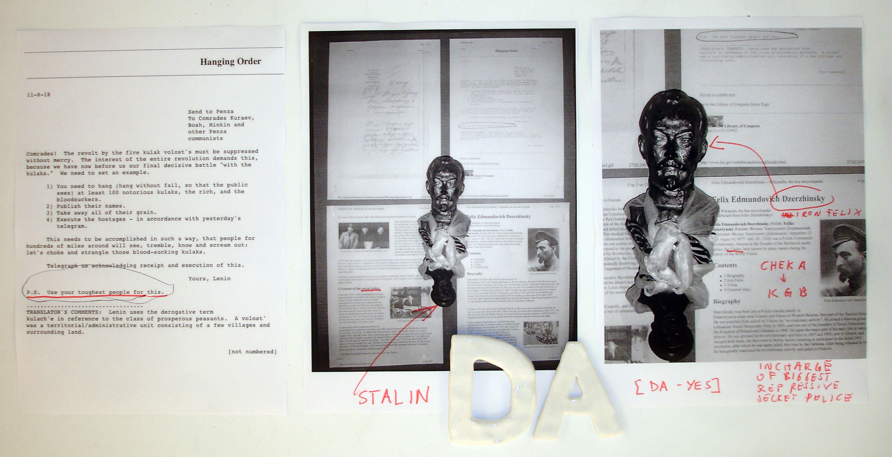 see the work PS: Use your toughest people for this, 2007(work on paper, metal bust of Dzerzhinsky and Stalin, plastic bags): made for the Moscow Biennial it was here recycled for a new piece with the same title PS: Use your toughest people for this, 2007 (work on paper, D A porcelain)