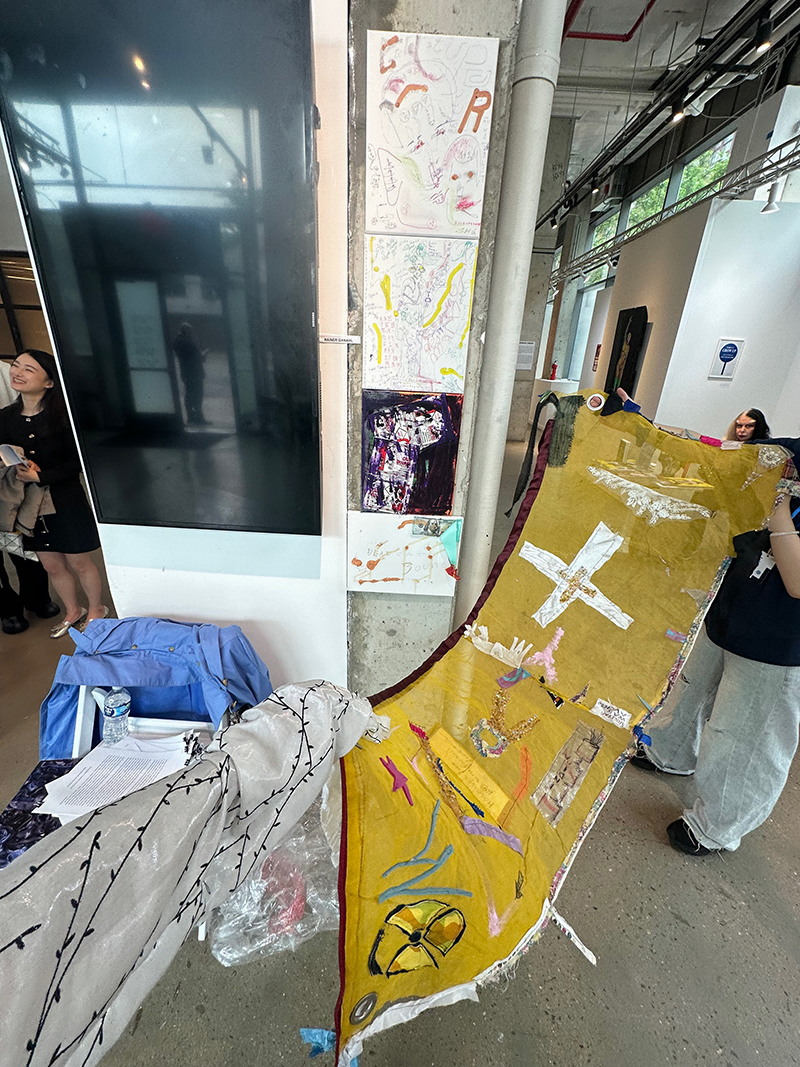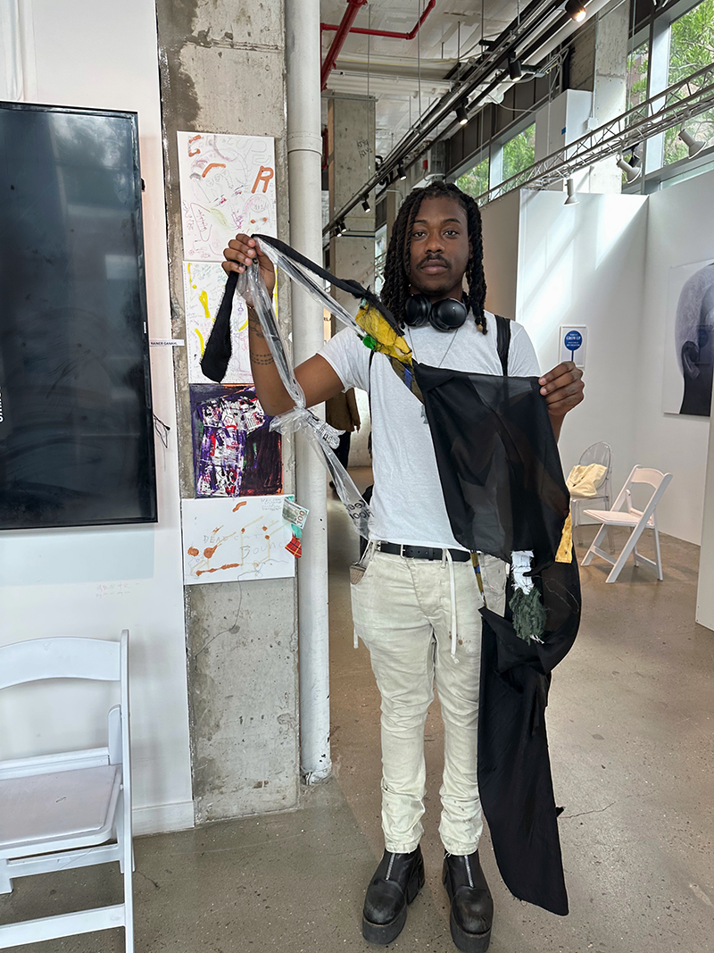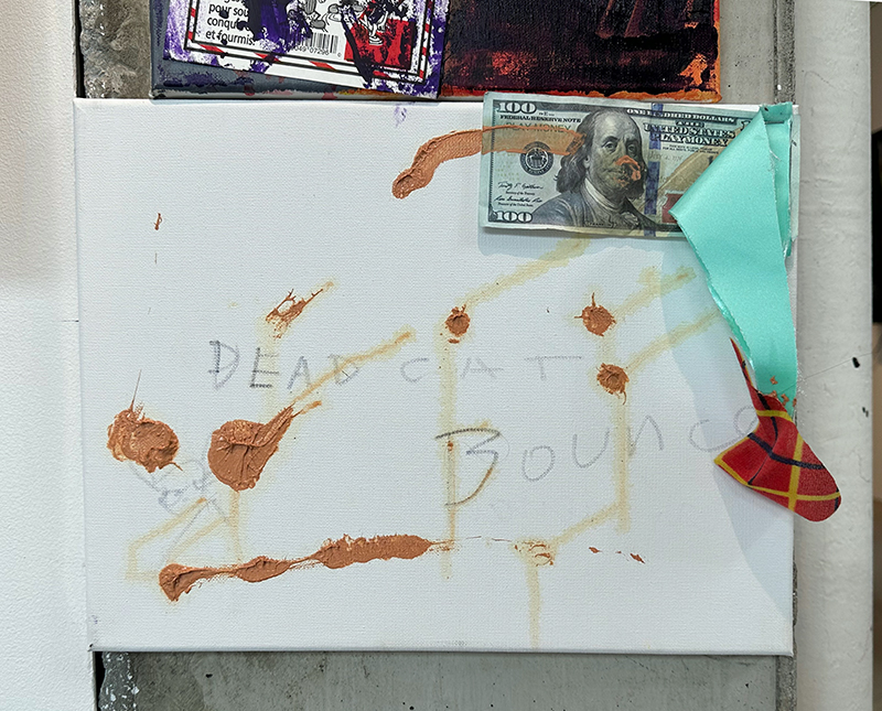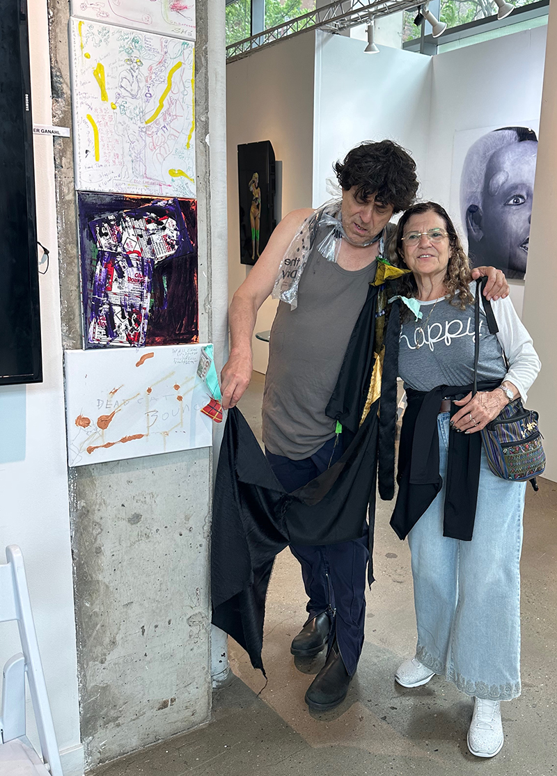image this vertical assembly to be a narrative - and the rest of the rather NON PRECISION WORK my way, the artist's way to breath .... I am not condemming anybody who works like me day in and day out on a screen and in isolation ... relatively speaking ... simply waiting and observing time. TIME AND CONVERSATIONS ARE FOR ME CULTURAL CAPITAL that I try to capture and "steal from the beholder. Hence.by introducing a foreign langauge, i hope i made cleasr that I am for a global world that is open and works collectively to share it's recsources. Needless to say, as an artist and in my position I have a feeling I have landed too many times on some glue pat and hence., let me apply the word stupor also to me... Hence, having seen too many ups and busts in my life, economics, personal and political ones .... I sp enjoyed to participate in a super high, super gentrified area that make you really wonder, was Hegel on Haiti right, or was Kant on peace wrong but my time keeps refering me over and over to the very beginnings. Hence, thanks for reading this, thanks the amazing gallerist Soziete Gouduna and her Gallery that is currently operating like an INTERVENTIONIST. Thanks to all the people who posed for me and who engaged with me and played with the complicaed outfits I was tailoring during a time people usually sleep. I recycle ideas, memories, conversations and live as much as I can in the future interwoven wiht the past that my presenece is keeping me skinny and active so that the absence of barely the money needed to pay for my shelter is hidden behind the GALGEN HUMORE I not only performed. Covid is still somehow in the pipelines albeit of the fact that I'd love to be seen in the traditon of my teachers and needless to say the situationists. I cannot totally hide the fact that many visitior didn't know who Gerhard Richter or Nam June Paik was (the later gave me my master in fine art from the art academy Duesseldorf where my friends dragged me quite a bit along to the critical verdicts of Richter, who acted rather like a greek emperor with finger up or down (he simply stood there and said notrhing and walked away) without really much comments - I adored and disliked the fear that he emanated and understood already then that authority can be overwhelming but should never break you... unfortunately, I have seen people who got stuck there in the mud of higher beings and hence... moved on the way I have always moved on - with or without monitary success. Money and dead cat bounced is about as photorealisitc as it gets. And yet, there is always more to be said, or nothing to be understood. The art of plently is in my case the noise that re-iterates the difference between aporia and surviving. But the most and unrenumerable success of this show was that I have walked away with so much humanity that was shared and be it only as if a boy who got lost on a central railway station staring at people he simply can"t understand albeit of the fact that we all survived covid and will make it throught htis current economic crisis. Interesting enough, working wiht COMMEDESMARXISTS = HENCE FASHION AS FINE ART - allows me to learn, the play with our fetishistic desires to please, and the fact that very few of us can really understand that HAUT COUTURE is what I make but without anyboy taking me seriously. Thus I am happy that have only the camera and social meida on my side. Luck had it, that when I handed a professional camera with a good old Leica lense to a good old friend - no mentioning of the name - the tale bounced from the floor and thing camera bounved on concrete like a piece of pizza. Pizza gate keeping was my way to lose weight - I starved myself by getting exited with each interaction. I do categoricallhy not distinguish between all the myriads of ways of being. I so respect each person's appearance and was amazed how we are all struggeling... being poor or rich, old or young, babies or dogs, and cats. I enjoyed the little food fights we had and the little picutres fight that is always a realithy. But all people how allowed me to be on picutres are here thanked in a way that gives me more ideas... I consider the ananomous format the most democratic format and yet - I have to be so careful with images as I do not desire to give anybody the impression that my ludic characgter is antagonzing or provocative. THE PRESENT AND THE PAST AND THE FUTURE IS OWNED BY EVERYBODY. my materials are elite and 'recycled' for a sustainable life wihtout waste but also without the dictatorship of austarity ... so soavings costs more lives and cresate more victims of wars... last but the least ... the global wars and potential antagnistm between super and micropowers is really drugging on the short temperdness of people and i find it sad to overserve stress in the lives of poeple including my own. i have to stop myself and not write forever.