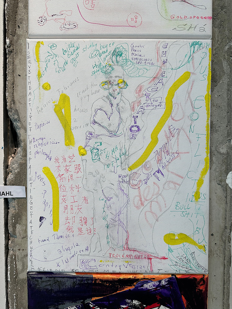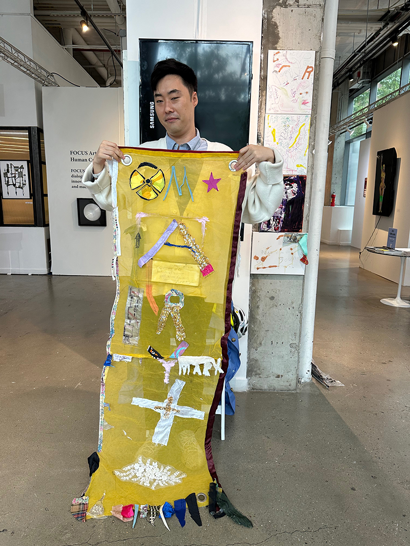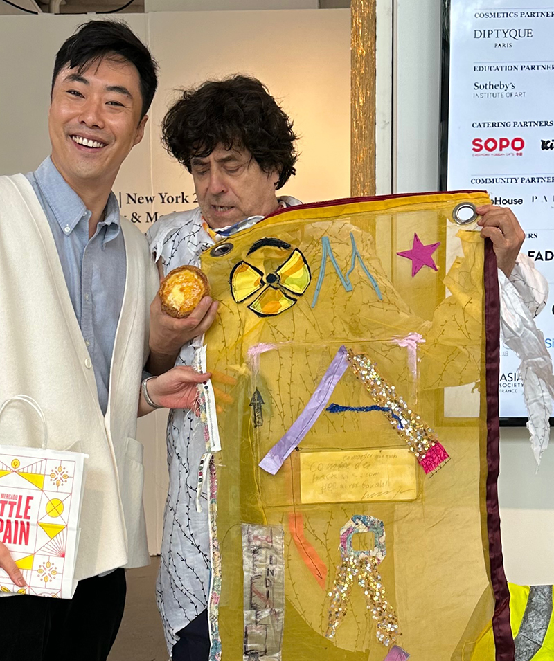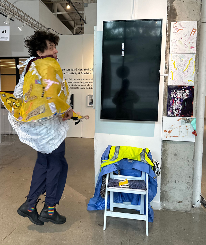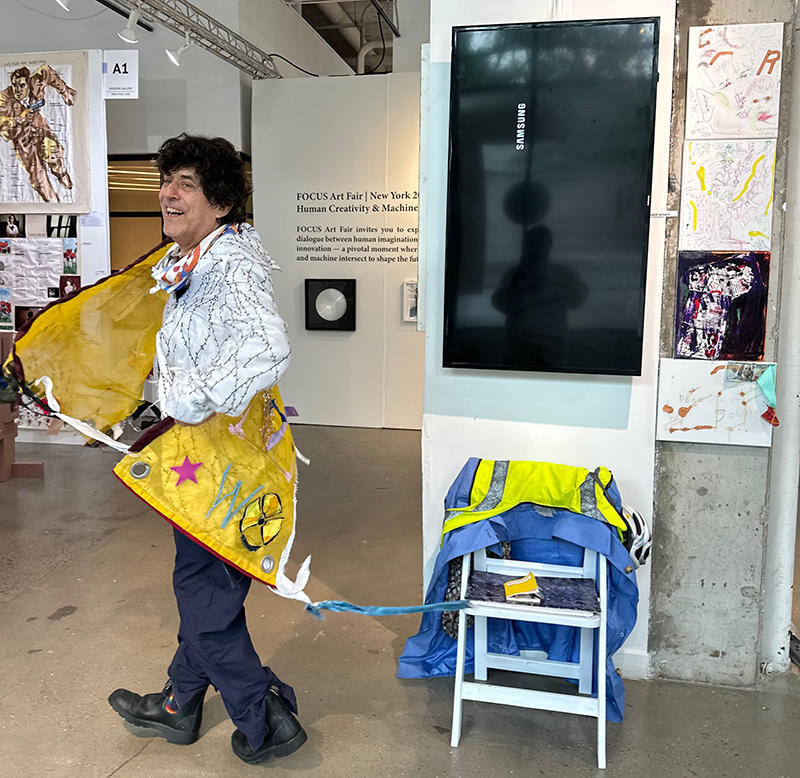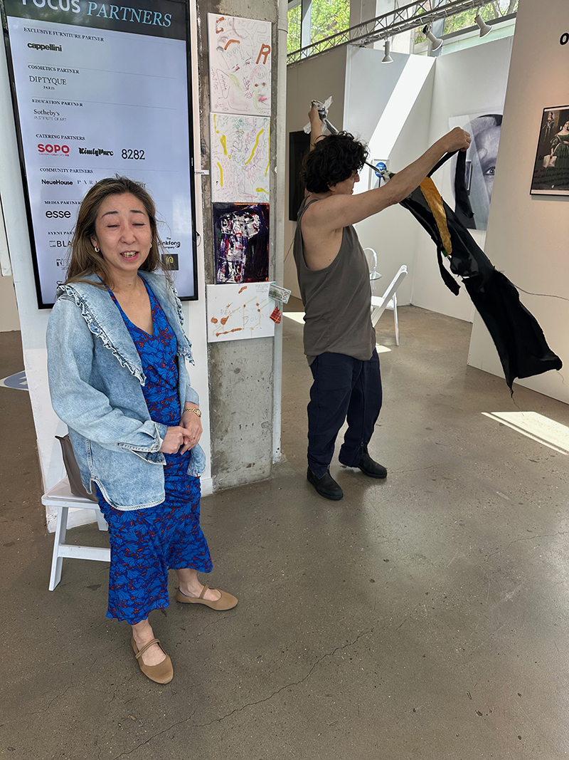 index ------- (page currently under construction as the fair only closed May 18, 2025) Chelsea ART FAIR FOCUS, WITH THE OPENING GALLERY, New York 2025 -- the one person show I hads last year 2024 in Tribecca art in time of "executtive oders" trying to be above the law - below the radar - thanks May 19th 2025. The works below are not meant to be arrogant or STUPORISIZE the visitor or the beholder but rather comment on my own life - my own difficultires to hand x-thousand images I take nearly everyday to work or to function. We (and sorry I ) am overwhelmed with information overload and then we forget what is essential. Friends, Truth, Justice, and a constant process to imporove ourselves. Due to the overload of archival material we all collect, we miss the point: to be together, to be alive, to not get f.... d over by scams, by promioses that never kept, by aps that sell us anything and by the fact that current politics drives into economics in such a brutal way, that the current leader of the USA suggests that money needs to be saved from those how need it the most to save taxes for the uber-rich. Unfortunately, the last election of Donald Trump has used racism, anti-semitism, sexism, and chauvinisim, anti-asian-sm xenophobia in general *( i am also an immigrant) as a key tool to intimidate and to come up with laws to "save money" that are simply not necessary and have driven us into an economic hard situation using FEAR, ANTI-SEMITISM, ANTI_ISLAMOPHOBIA, ANTI-FFREEDOM OF SPEECH and finally CHAUVINSIM in such a dramatic way that we are all hurt, that we are all scared of each other, that we are all isolated and fear anything could be used against us. I am very happy that OPENING GALLERYgave me this chance to effectuate here my "PLEASE, TEACH ME CHIINESE" performance and thus interact with the public through various FASHION AS ART commedesmarxists outfits that playfully let me interact with the public. This art fair took place in Chelse and hence profited from the richest people in the world who live in the vicinity. The Fair Itself is a new start up ... and has Asian American *mostly Korean sponsors and exhibitors - hence, it was not directly competing with FRIEZE and the INDEPENDENT directly but wishes to do so. Hence, the fair came a week after the big fair and I didn"t noticed it advertized in big ways. It was rather like the idea of COMMEDESMARXISTS self-contained, on survivor modus, and the the majority of exhibitors were aritsts. I am so so happy that THE OPENING GALLERY had such a prominent booth, A1, and i was able to basically greet the people and surprise them. I am very thankful to the founder and art historian who constantly underlines that fact that she is not an art delar ---- * i contradict her .... because her commet is raising and I am proud to be part of it. Also we know each other for so long and inform each other about life without blue chiip income when nobody is risking anything anymore. I have noticed on Frieze, or ART BASEL the enormous PR activites that go on and hence partially MIMIK their very expensive campaigns. Also FOCUS had many smaller venues that were commerical start ups. The topic was digital life and hence, I decided to reflect in my way this conditons. I am mostly self-taught when it comes to FOREIGN lLANGUAGE LEARNING. I have represented Austria in the Venice Biennial in 1999 and addresses the politics of LANGUAGES in telatisonship to the economic and global politcal power of nation - national languages - and military hegemony. Needless to say, the question for me is to what degree is DEMOCRACY AND TRANSPARENCY IMPORTANT ? I AM ON THE DEMOCRATIC SIDE and basically pretended to use dark humor and slap stick technics to "cutify" or self-inferiorate myself to make a point. The charm of that fair was that it s as if
