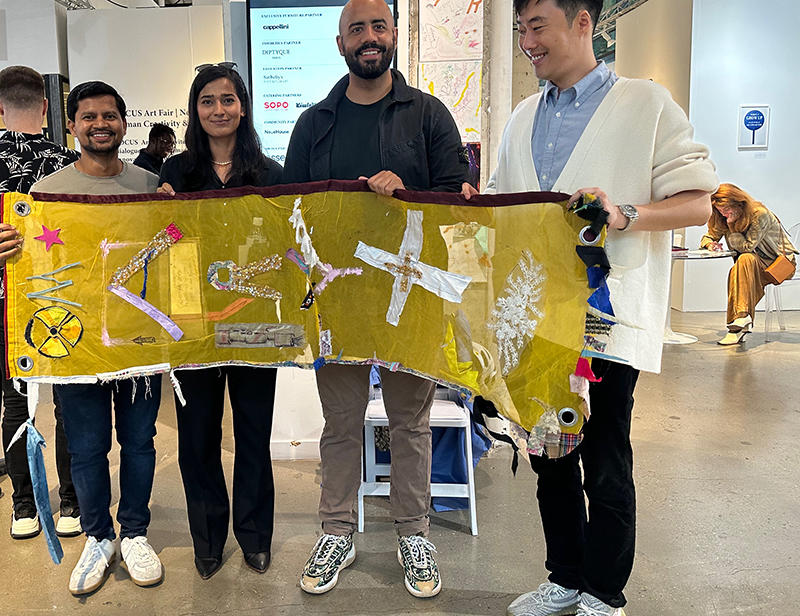 COMMEDESMARXISTS was next to SOTHEBY's the most rounded (karl marx-ed) up CASSANDRA SYMBOL at the fair because the pie was given to me by this amazing generous gentilman who landed a job in a top firm and promised me not forget me.. but I congratulate him for being part of MY PEACE ACTVISM which was not meant to make money but to guarantee our SURVIVAL.. because only the week earlier.... TWO NUCLEAR POWERS WERE THROWING BOMBS AT EACH OTHER... PAKISTAN AND INDIA... which is nothing fun.. but the HENCE. CONSIDER THIS DRESS HIS NOT A GARFUNKEL OR A BEATTLE GB OUTFIT YOU USE WHEN YOU ARE ON DRUGS in central park but whehyn you try to USELESSLY AS AN ARTISTS TO SAVE THE WORLD.. from disaster or at least... try to hint at alternatives to CARS OR SUV s or so.. but please understand ... the LOGO ... commedesmarxists and my signature is in the piece... and the rest is a portrait of the neighborhood... a nice "made in trump land" who wants to make a nuclear shield around us..