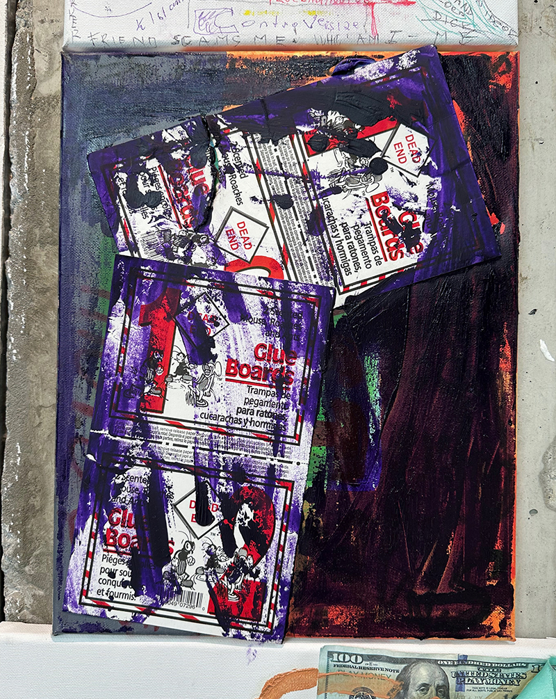 what saddens me the most .. hence the colorless painting with the glue pad anaylsis : from the NEW YORK TIME - HEAD LLINES. TRUMP'S NEW POSITIOIN ON THE WAR IN UKRAINE: NOT MY PROBLEM. (NOTHING NEW - but the we starve for news. in a reversal, President Trump appears to have backed off joining a European push for new sanctions on Russia, seemingly eager to move on to doing business deals wlith it. this is why i do art.. at least.. i can illustrate the disgusts in the world