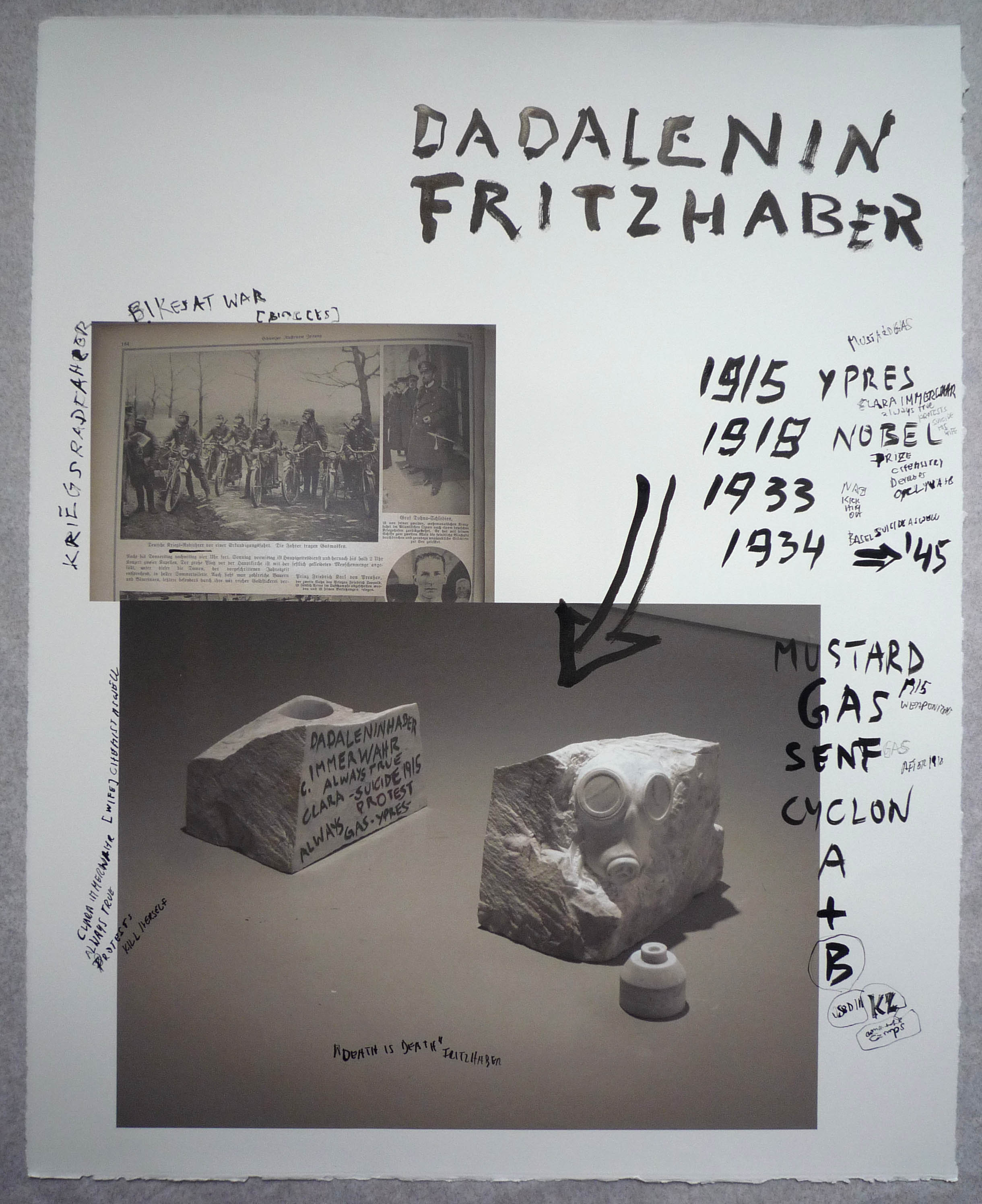 DADALENIN, Pigeons with gas mask = DADALENIN, 2008s 24 x 30 inches, print, and ink drawing on paper