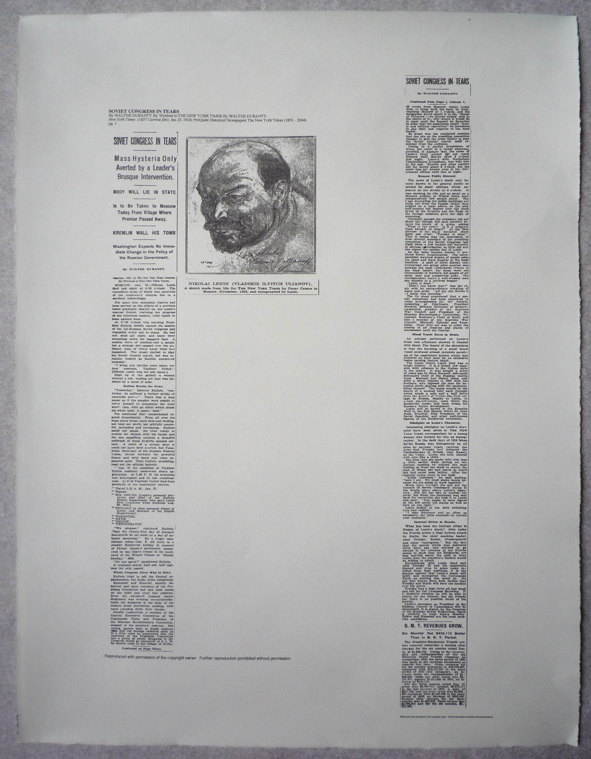 DADALENIN NY TIMES DADADEATH, Lenin, 1924, 2008 ink jet print on paper, 64 x 48.5 cm / 25 1/4" x 19 1/8 inches Reading Lenin, Moscow, 2008 photograph, 20 x 24 inches, edition 2/4