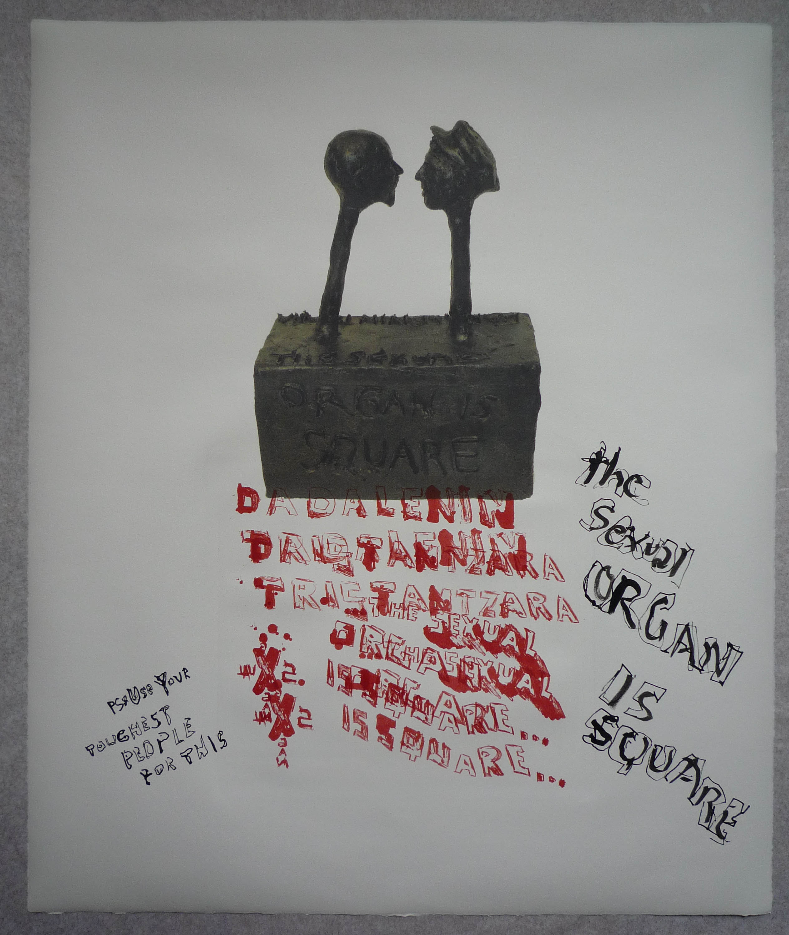 DADALENIN, The Sexual Organ Is Square, 2008s 24 x 30 inches, Lithograph, Print, and ink drawing on paper