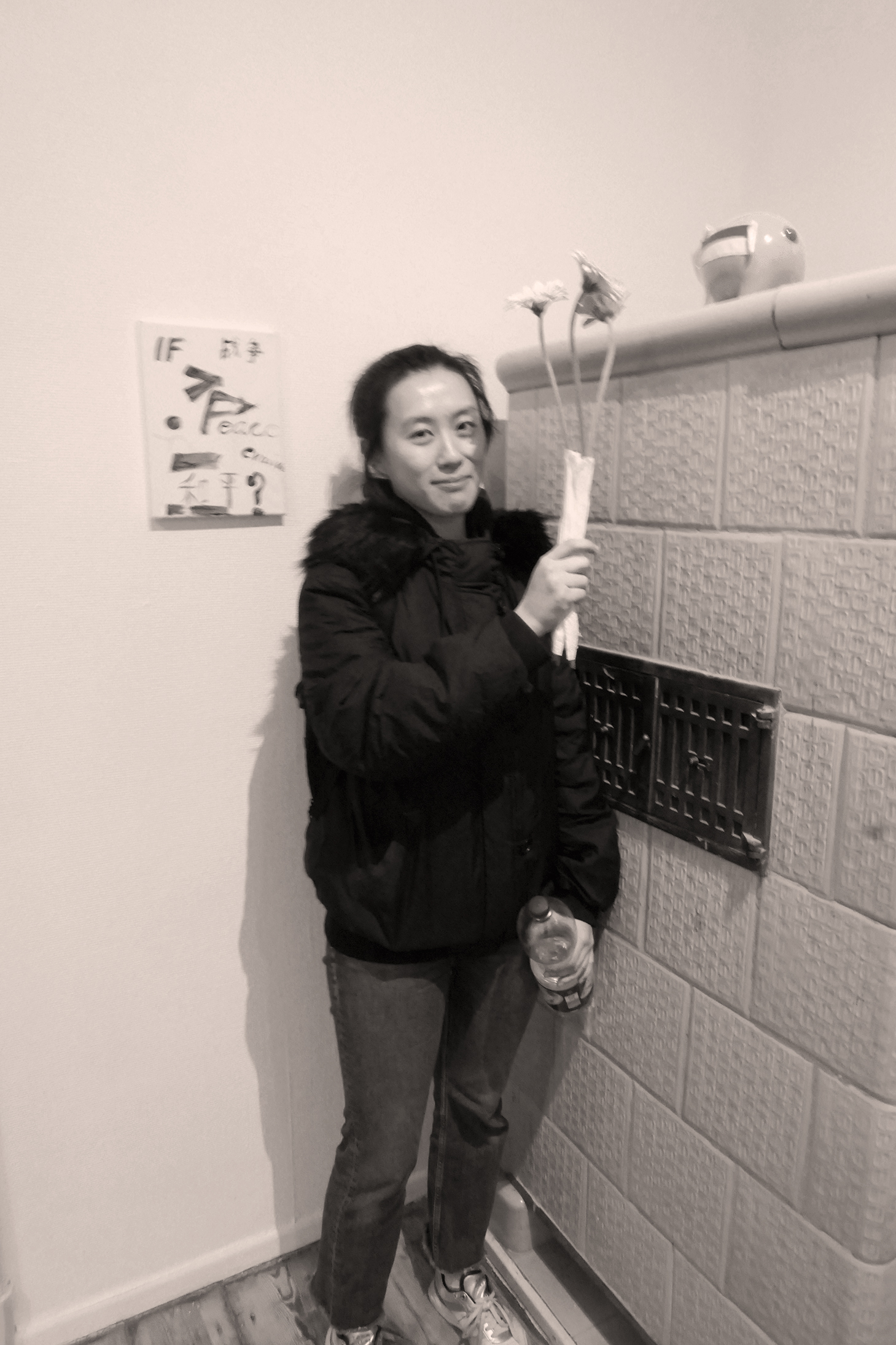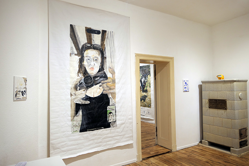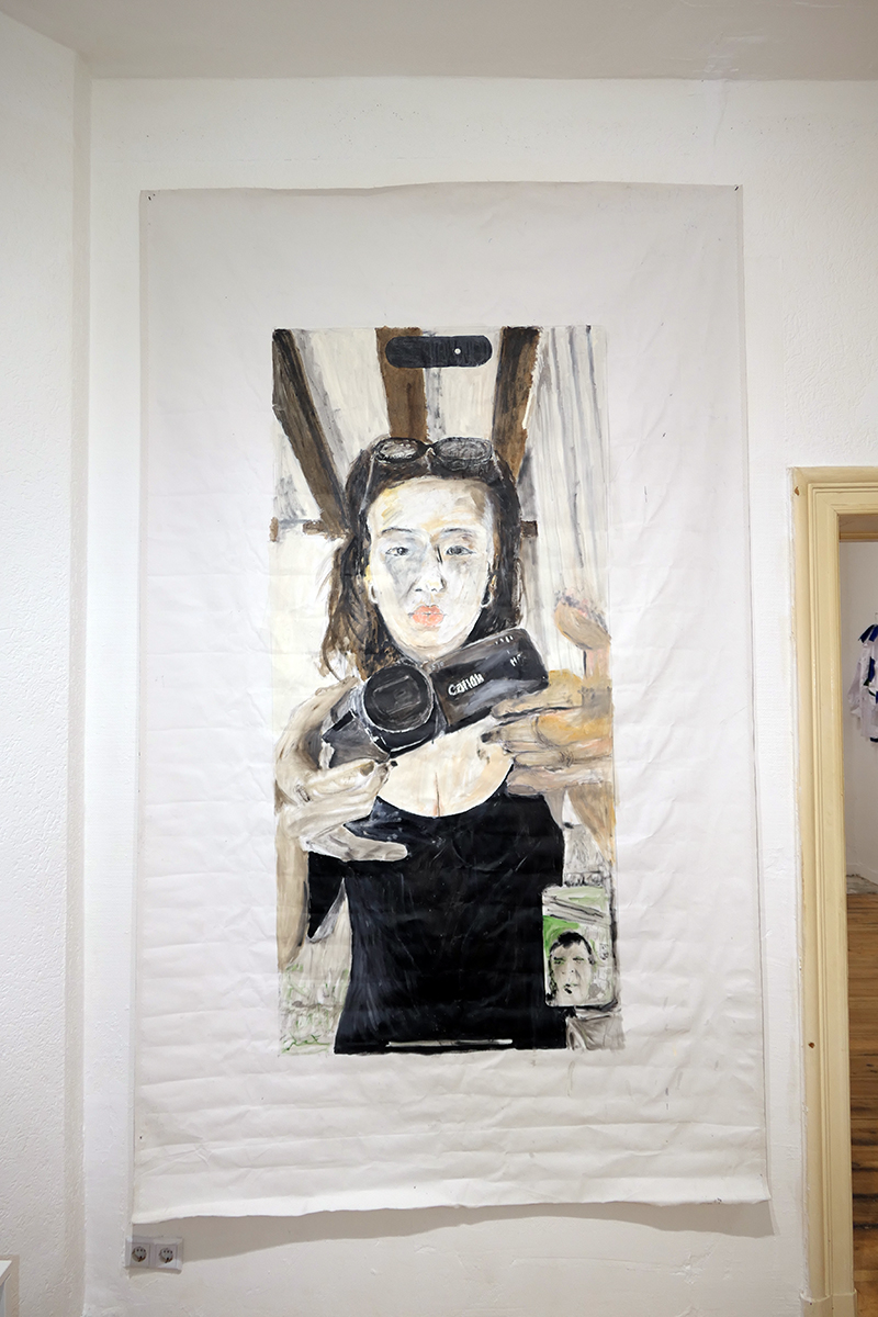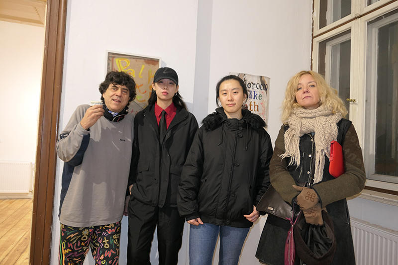 visiters - past and future artists (me with Peng Xiangheng, Xiaoxiao Li, and next show's artist at DAUMENLUTSCHER Yanka Smetanina (a refugee from Moscow)