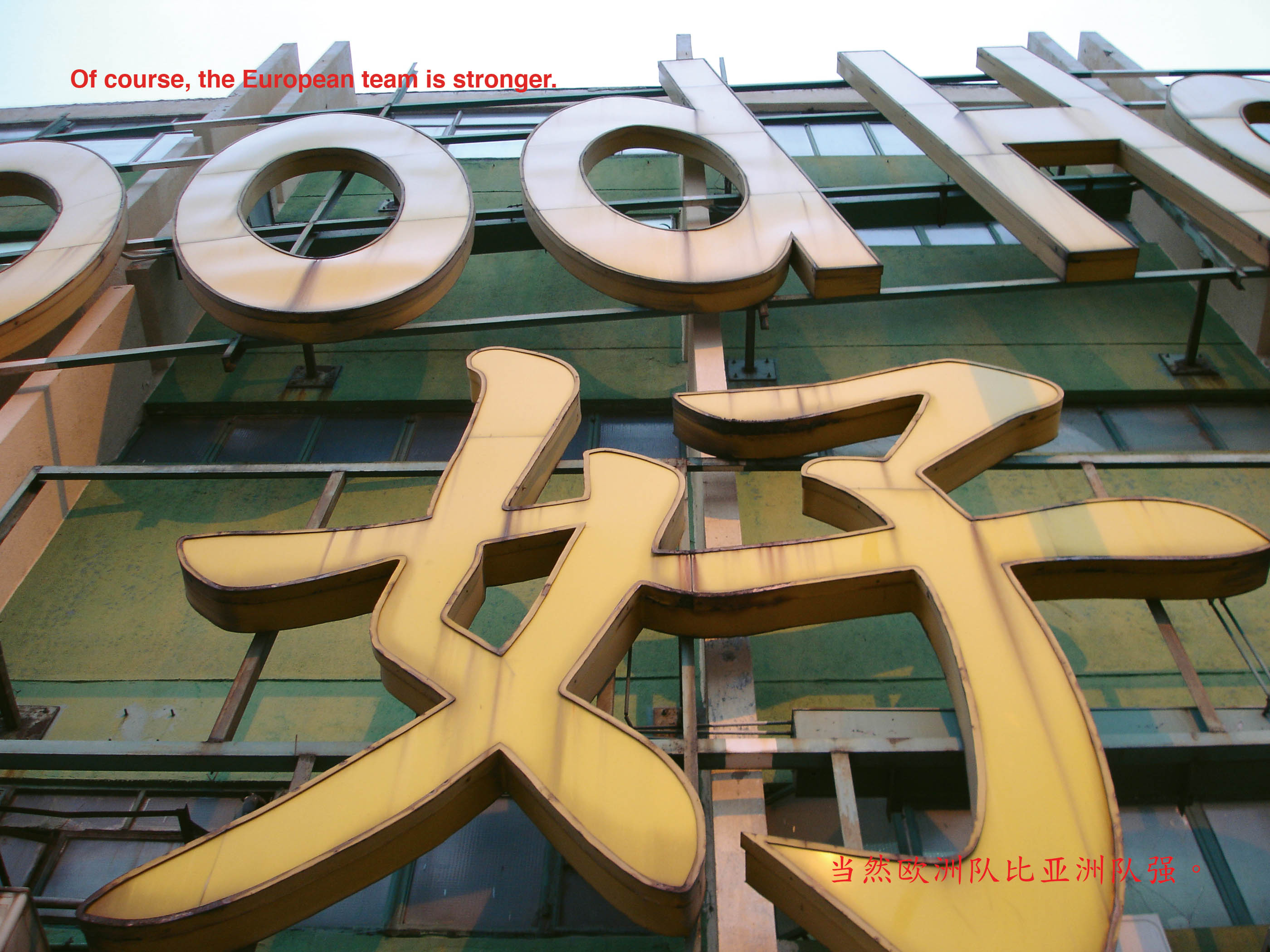 Basic Chinese, Of course, the European team is stronger, 2005 photograph - 27 x 36 inches (dimension could be different) - click to download hi res image