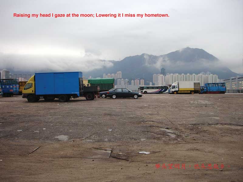 Basic Chinese, Raising my head I gaze at the moon; Lowering it I miss my hometown, 2005 photograph - 27 x 36 inches (dimension could be different) - click to download hi res image