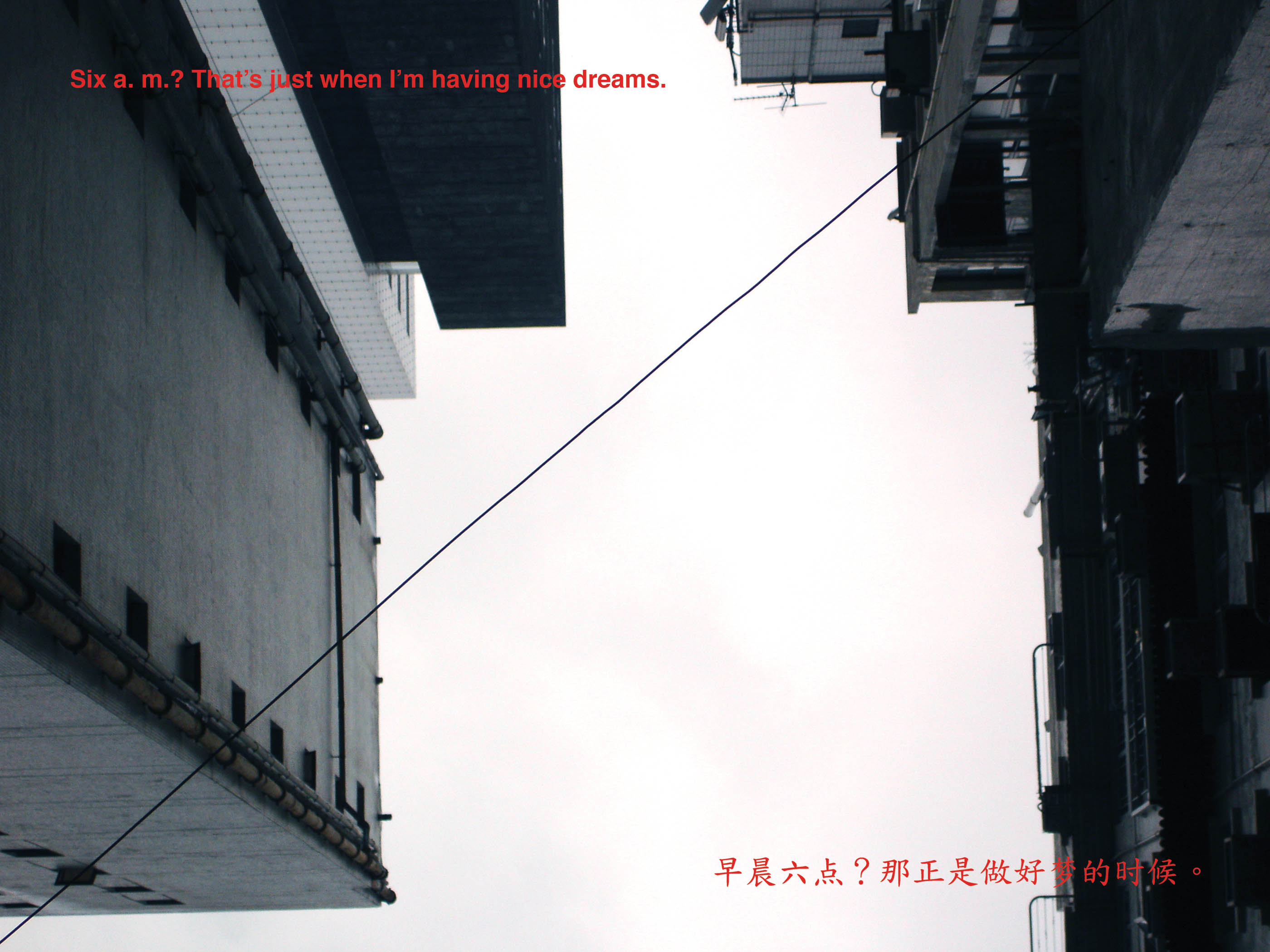 Basic Chinese, Six a. m.? That's just when I'm having nice dreams, 2005 photograph - 27 x 36 inches (dimension could be different) - click to download hi res image