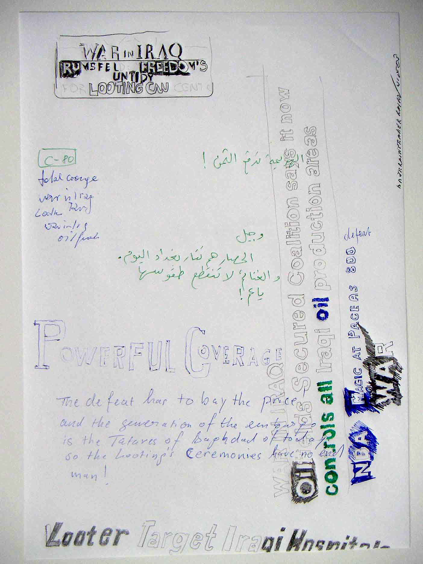 click image to download hi res image OPERATION IRAQI FREEDOM, 2003 ball pen on paper, size 50x63 cm