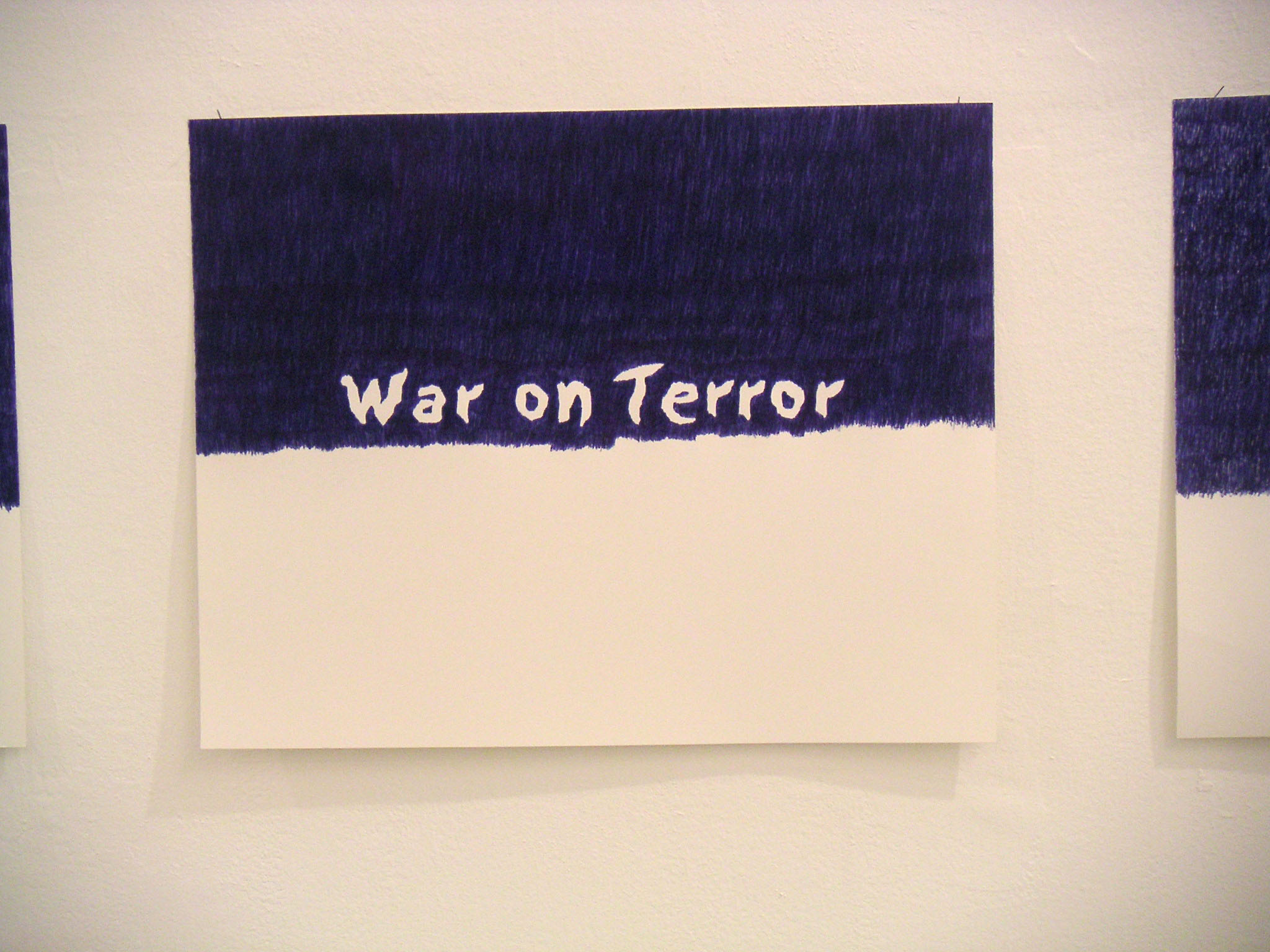 click image to download hi res image WAR ON TERROR, 2003 ball pen on paper, size 50x63 cm