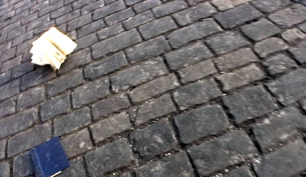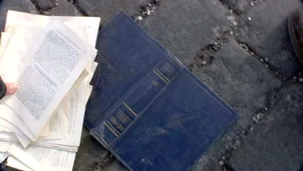 V. I. Lenin, Collected Works, (Russian Edition) 1962, 2007 5 min. In the European and Russian tradition of book destructions, I am kicking a Russian edition of Lenins collected works accross the Red Square towards the Lenin Mausoleuml, where he still is for view almost daily until 1 pm. This work landed me in the hand and then in the car of the police. I was accused of Holigansim, an accusation that was "forgiven" after a payment of about 150 dollars - so to say, my most expensive taxi ride in Moscow.