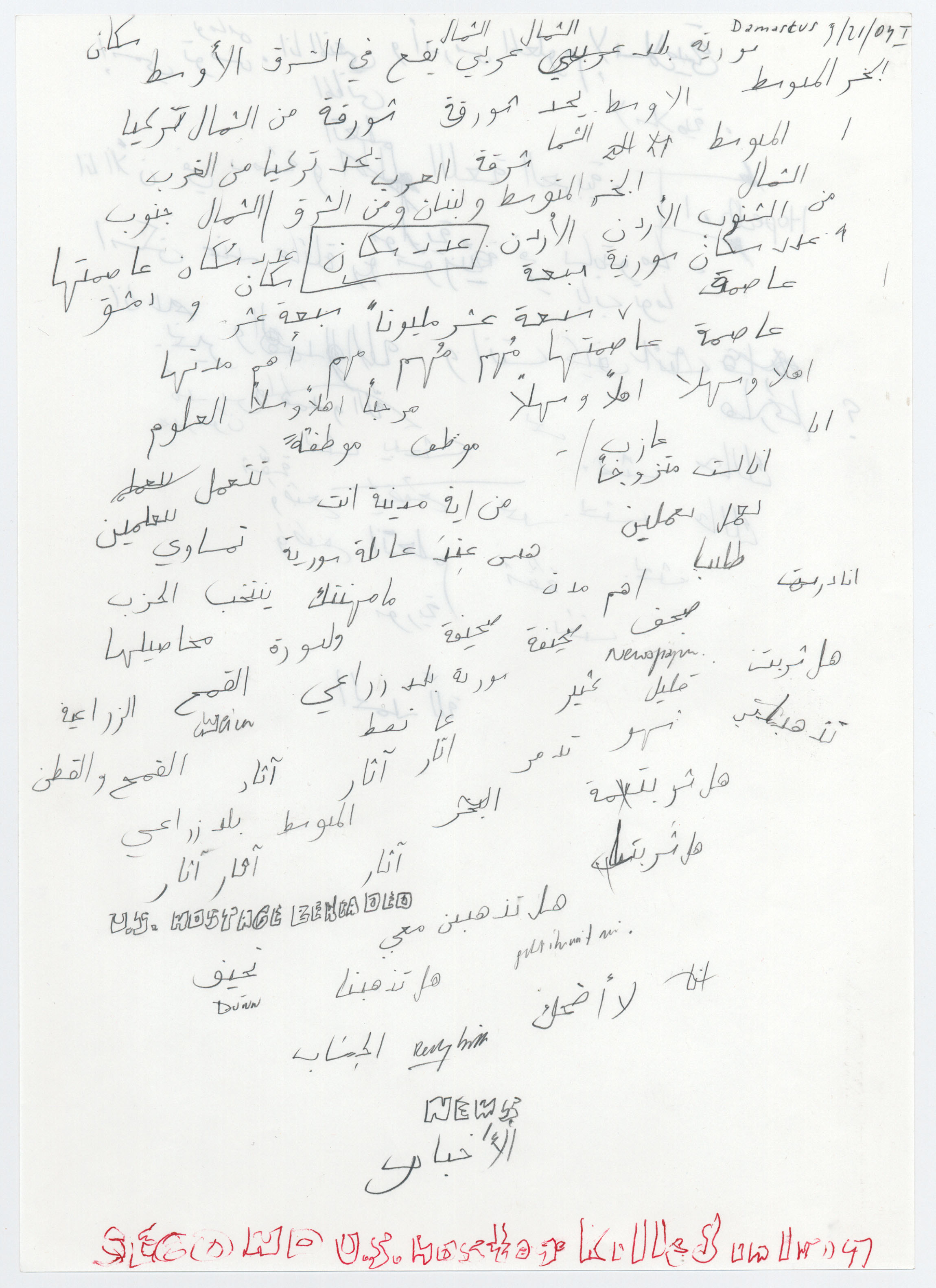 Basic Arabic (Study Sheet), Damascus,