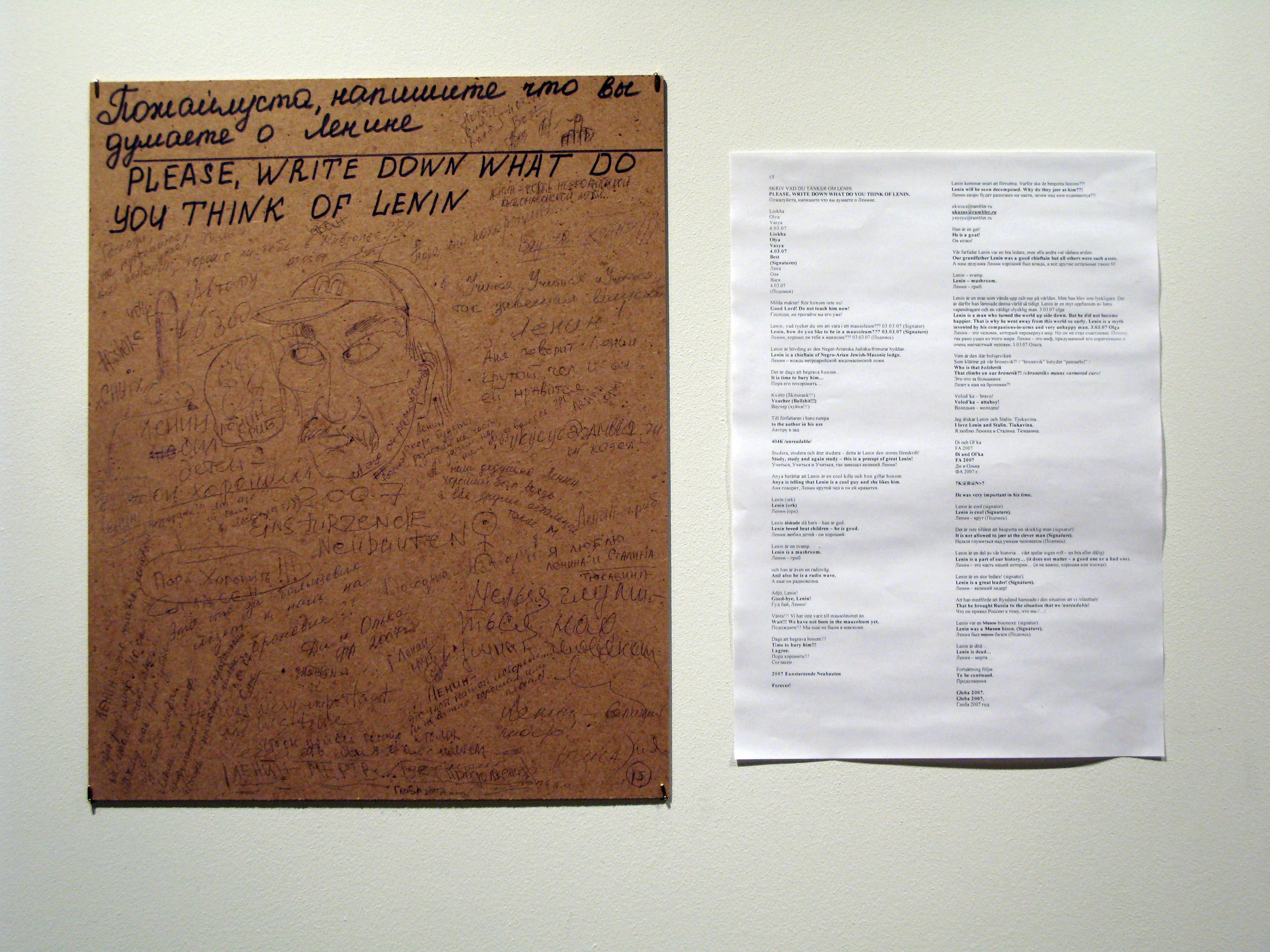 Please, write down what you think of Lenin, Moscow, Biennial 2007, 2007 DADALENIN - collective works / questionairs back to dadalenin tensta