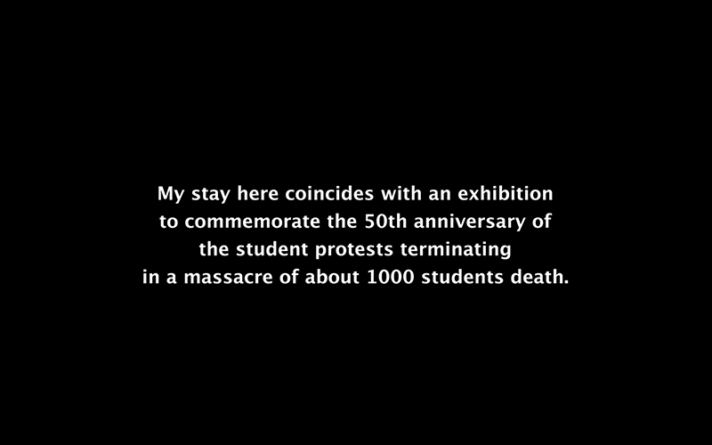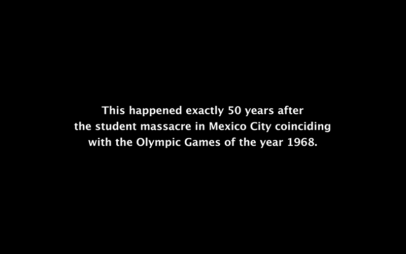 REPETITION, MEXICO, 1968 /2014 /2018 REPETITION is about STUDENT PROTESTS ENDING IN DEATH. On April 21, 2018, while working on an exhibition commemorating the 1968 Mexico City student massacre, ( 50 YEARS AGO) Repetition - the broadcaster is leanring his lines and is filmed 3 times ; the student killing is repeated - 1968 and now , mexico city and puerto rico at EXACTLY 50 years later; commemoration of 1968 in 2014 also turned fatale for 43 Mexican studetns.. ALSO NOTE: we see a journaist at work , descibing how the police and military move in on the students (but so far not too many casulties) but already next morning... barely 20 horus later, you have 10 studetns dead including people from the media. i consider journalists HEROS. as well as protesting workers and students. here repetition is tragic, not a farce