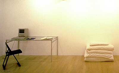 | bijutskan ni sundi imasu, (living in the museum), 1993 Person's Weekend Museum, Tokyo, 1993 Futon, Computer, Desk, Chair