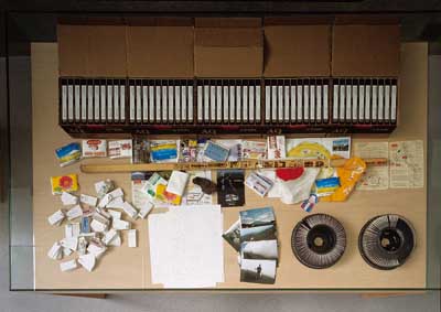 | 50 Days, 2 Hours a Day, Basic Japanese, 1997 100 video tapes presented at Kunsthaus Bregenz, Austria, with a variety of other works and objects I used in relationship to my studies and the climbing of mount Fuji in 1997.