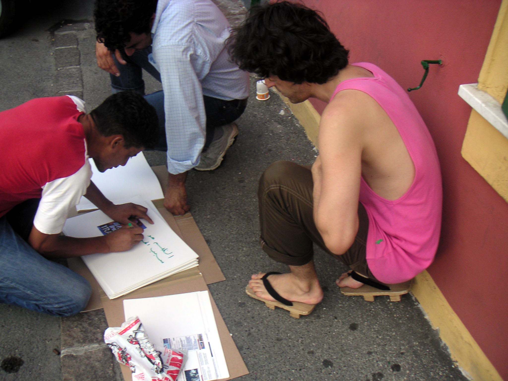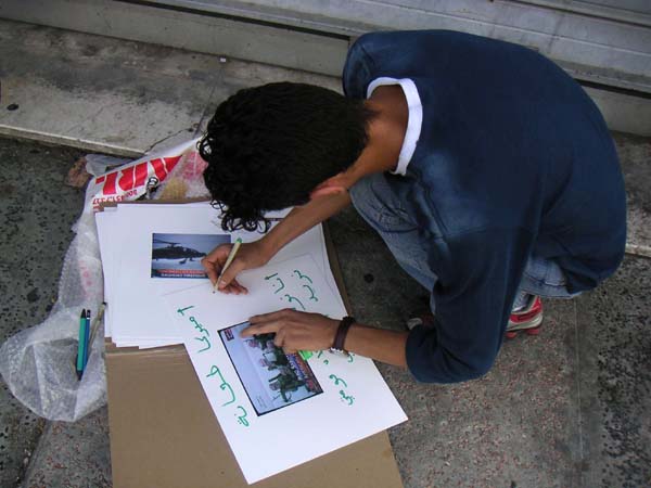 All the photos have been made with explicite permission of the participants. Given the very stressful situation for Arabs at the current moment of history there is a big level of distrust and paranoia which let many people decide NO on photos and full identifications. Almost everybody expressed his/her concerns about negative consequences and joke were flying about "going to prison" for their writing or their suspicion of whether I am working for the CIA or MOSSAD etc. etc.