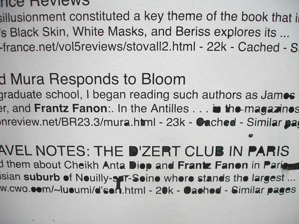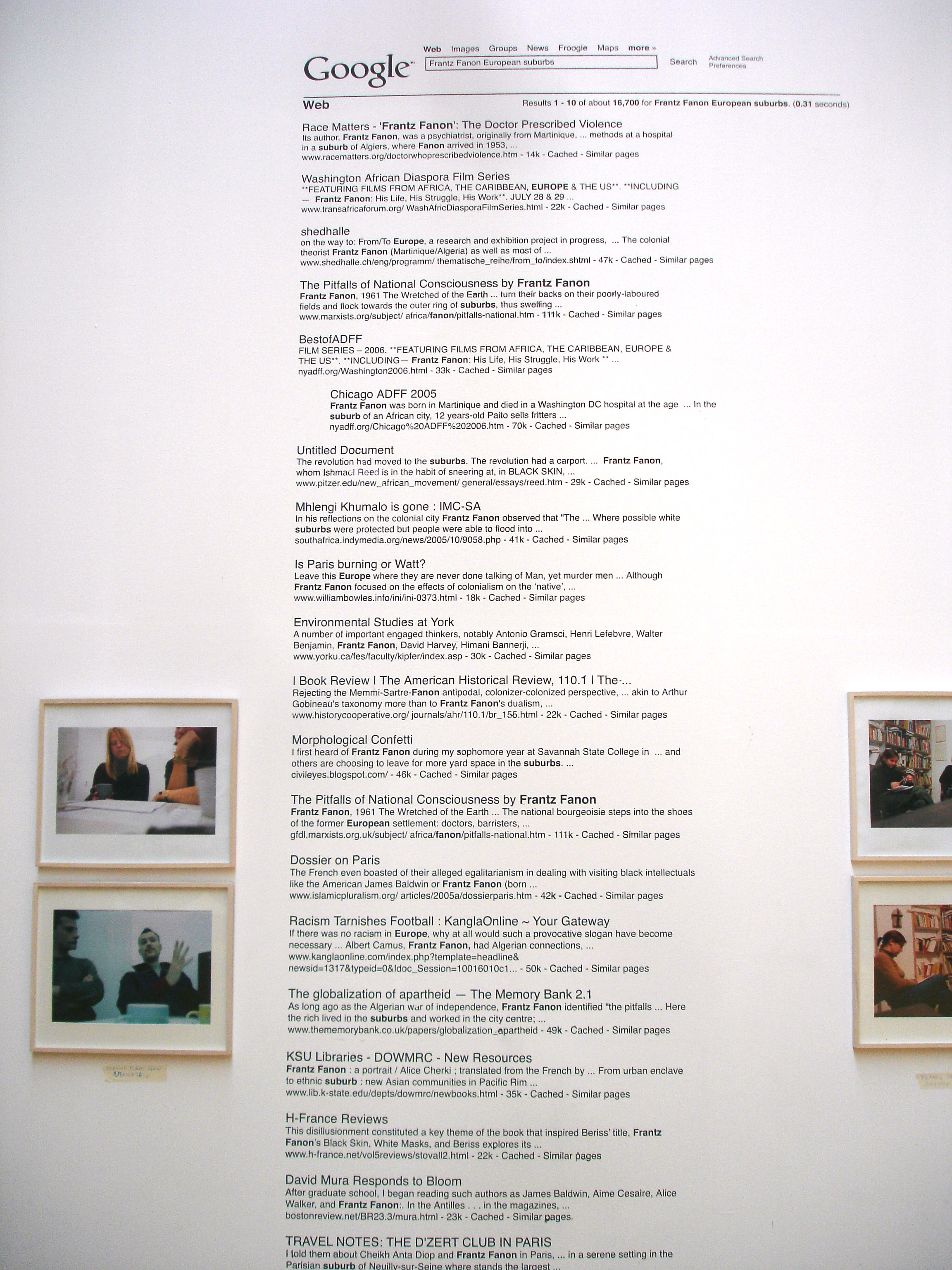 Searching "Frantz Fanon European suburbs" on Google.com", 2006 installation view detail