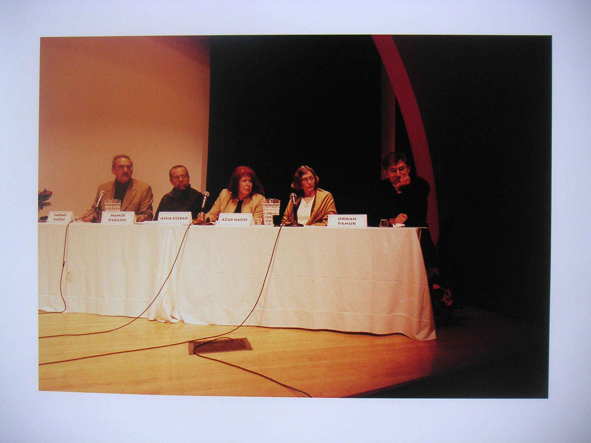| Seminar/Lecture, Hamid Dabashi, Assia Djebar, Azar Nafisi, Orhan Pamuk, Moderator: Farhad Kazemi, Islam, the public and the private spheres, Session V. Representations of Privacy in Literature and Film: case Studies, New School University, New York, 12/7/02 20 x 24 inches, edition of 4