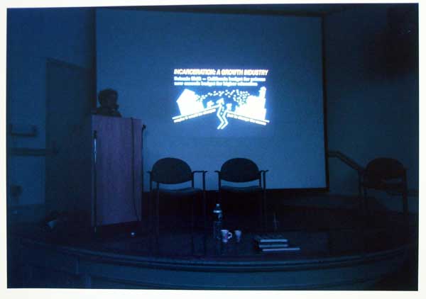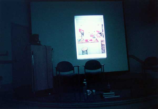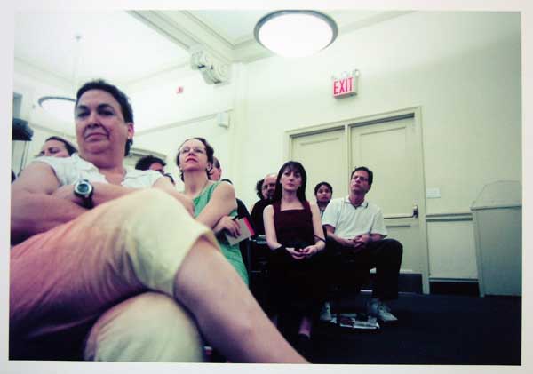 | Seminar/Lecture, Martha Rosler, Martha Rosler talks with curators Dan Cameron and Brian Wallis at NYU, New York University, New York, 8/8/2000 Neg: 619391 4 photographs, 20 x 24 inches, edition of 4