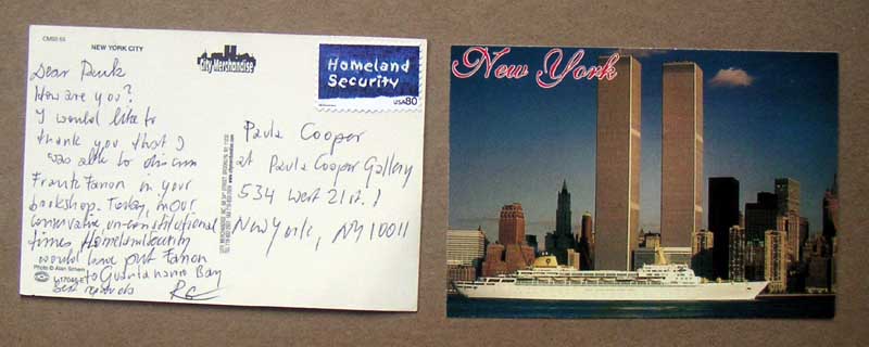 Dear Paula, How are you? I would like to thank you that I was able to discuss Frantz Fanon in your bookshop. Today, in our conservative, un-constitutional times, homeland security would have put Fanon to Guantanoamo Bay. best regards, RG CARD WAS ACCEPTED AND DELIVERED BY US POSTMASTER