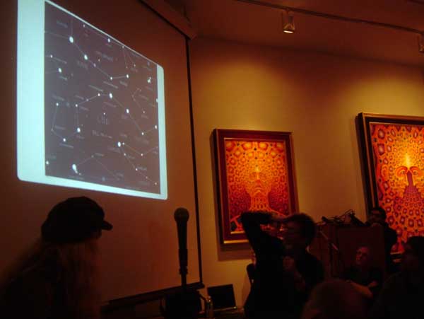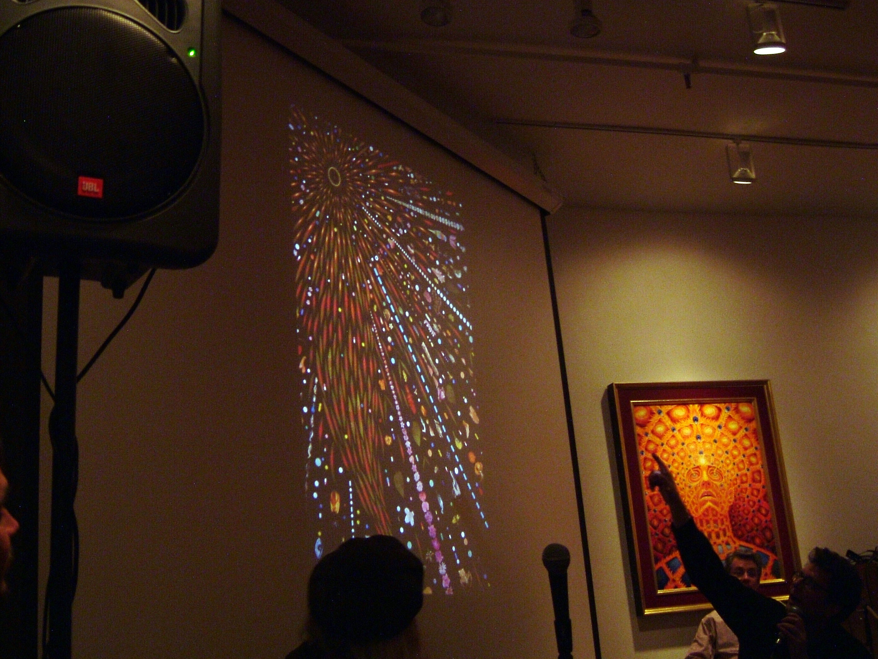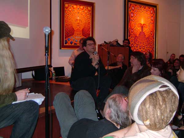 Seminar/Lecture, Fred Tomaselli, Gary Panter, Joshua White, Psychedelic Visions in Contemporary Art, Chapel of Sacred Mirrors, New York, 1/8/05 4 photographs 20 x 24 inches , Edition 1⁄4