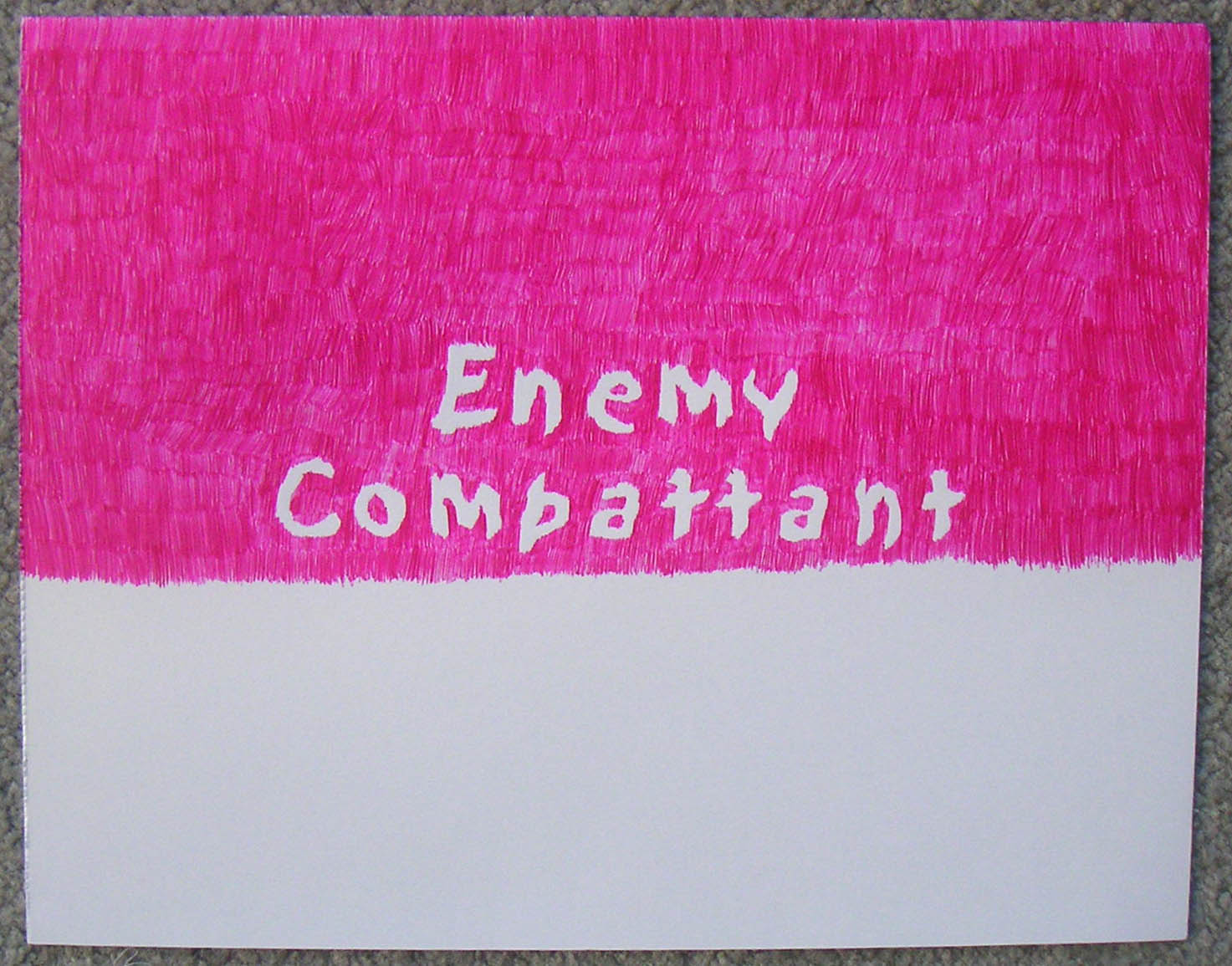 Enemy Compattant, 2003 11 x 14 inch; 28 x 35.5 cm -red ball pen drawing on paper - click image to download high res.pic.