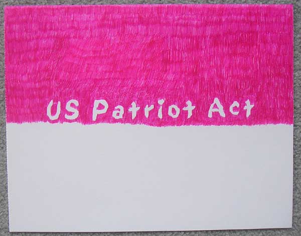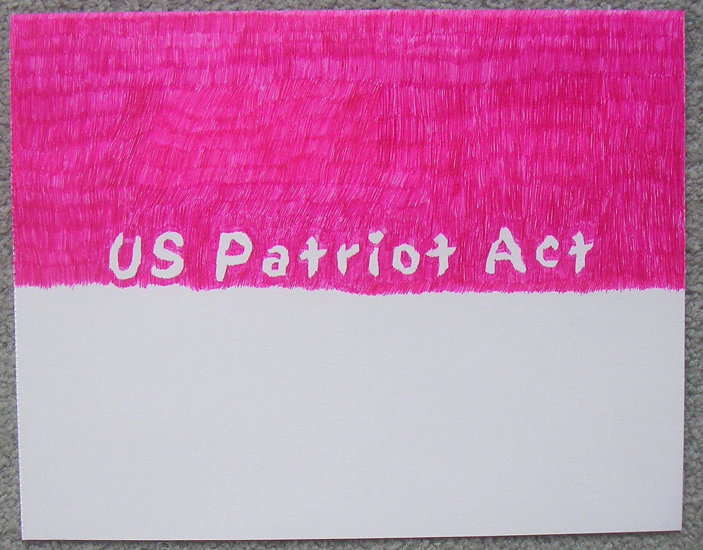 US Patriot Act, 2003 11 x 14 inch; 28 x 35.5 cm -red ball pen drawing on paper - click image to download high res.pic
