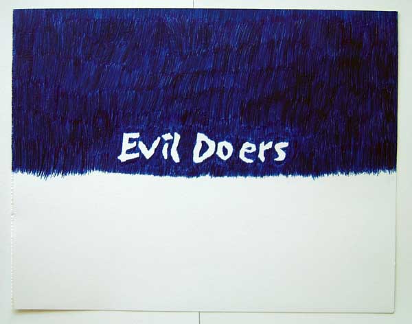 Evil Doers, 2003 11 x 14 inch; 28 x 35.5 cm -red ball pen drawing on paper - click image to download high res.pic