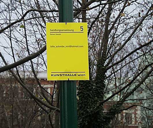 bitte_schreibe_mir @ hotmail.com (Permanent installation, Vienna) trans: please_write_me @ hotmail.com (which is not my address: this is somebody elses address) |